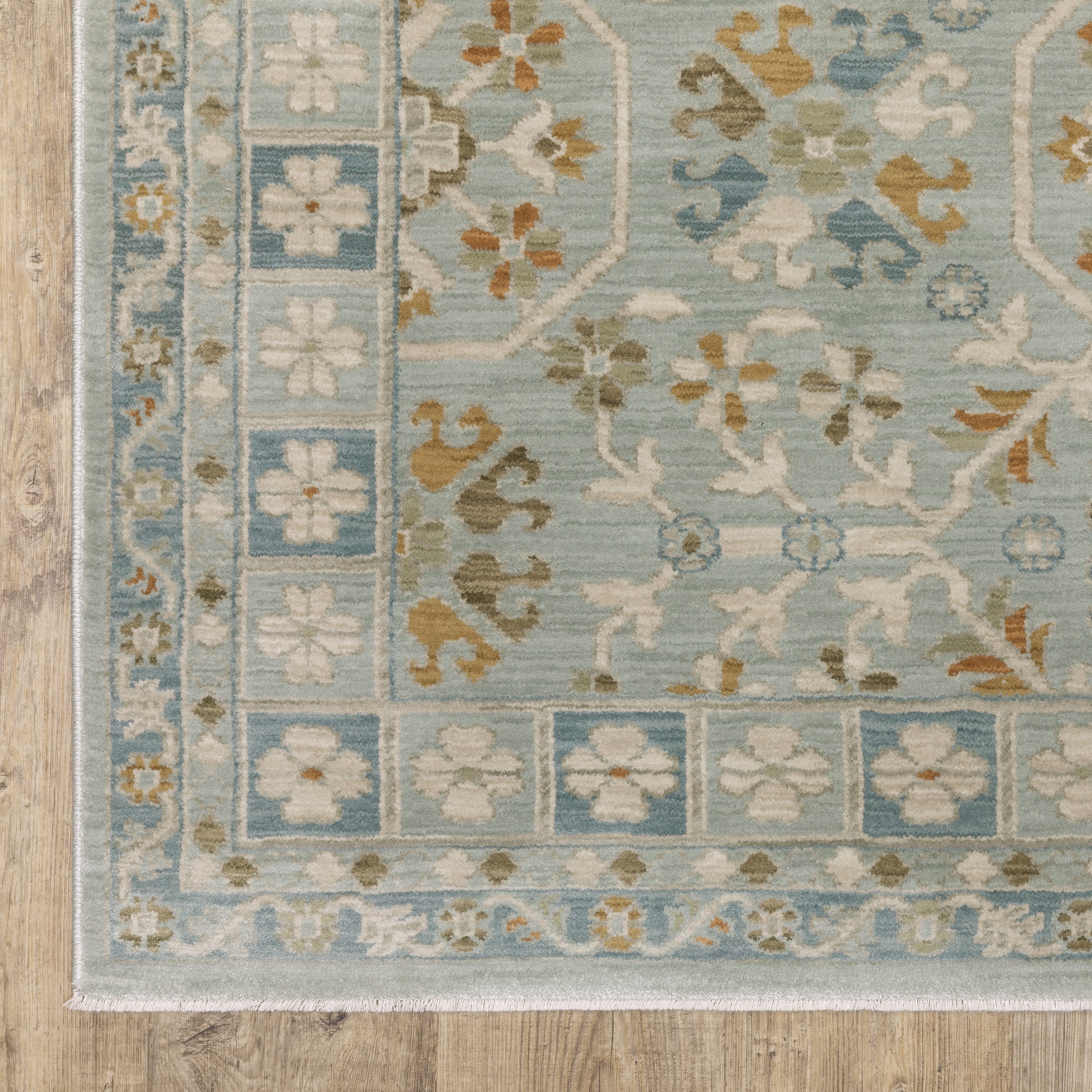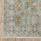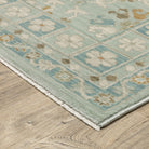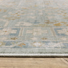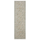 The Maeve collection features subtly pigmented color palette features neutral tones of ash brown, oat milk and sustained gray as well as mineral-based blues, matcha green, sunbaked clay and antique gold. The quietly modern color palette gives fresh appeal to traditional Persian and block print patterns with a touch of bohemian flair. It is power-loomed of super-soft, space-dyed polypropylene.