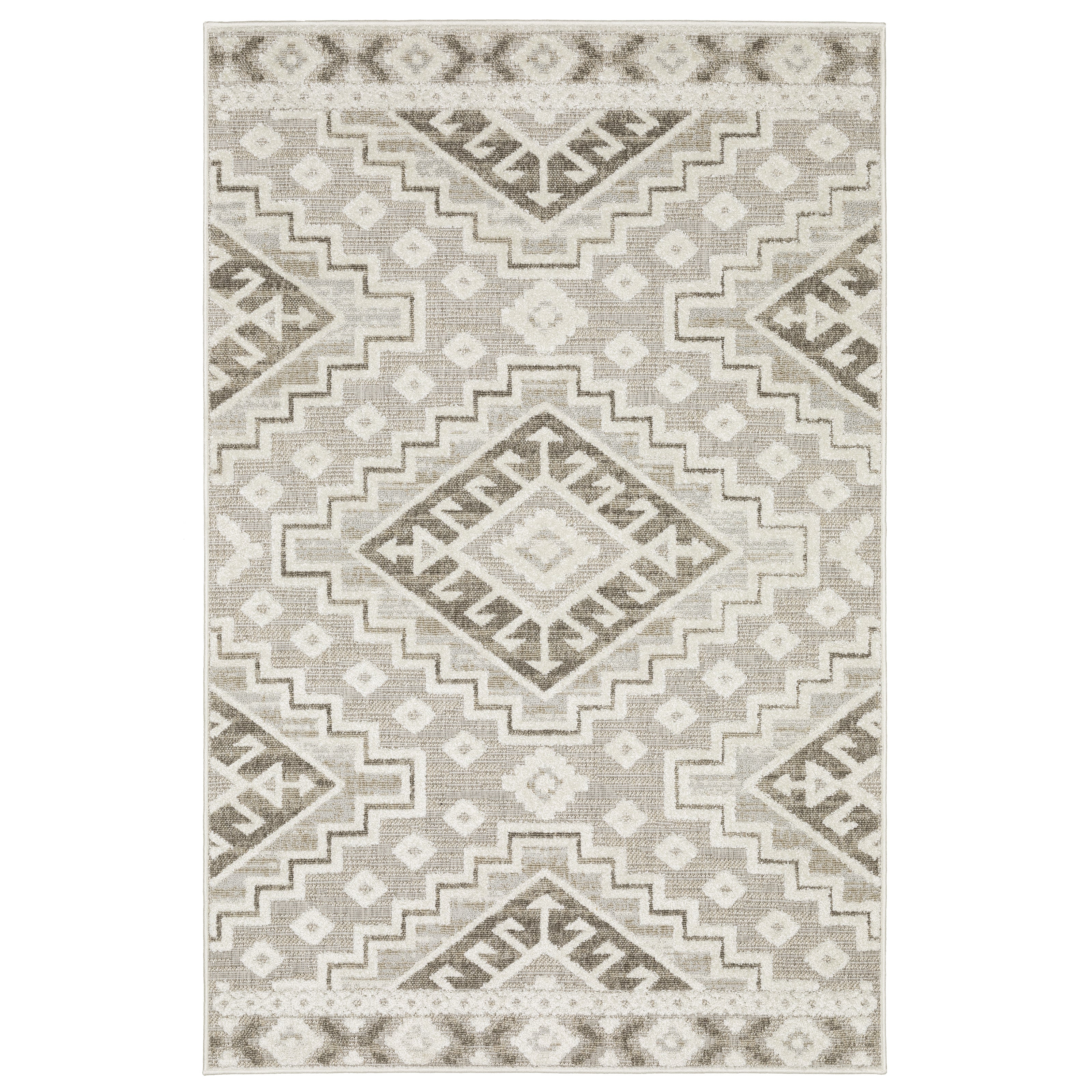 The Tangier collection showcases global patterns in on-trend neutral tones ranging from ivory to warm sand and cool gray. Power-loomed of 100% polypropylene with textured and multi-tonal lustrous yarn, Tangier offers a sophisticated look and feel. Tangiers multi-level construction features plush cut pile, textured loop and flatwoven areas that create a visually intriguing and tactile appeal to any decor.
