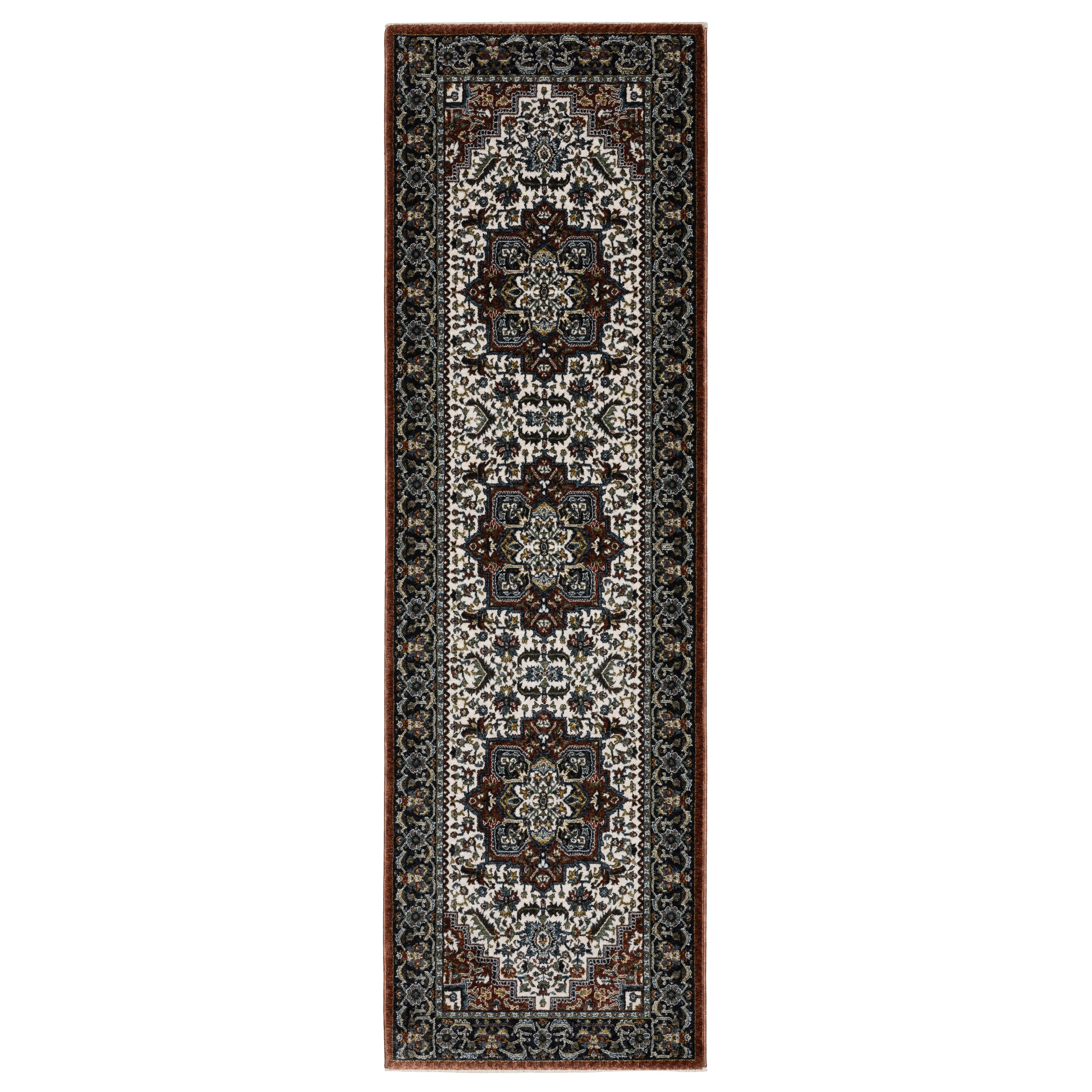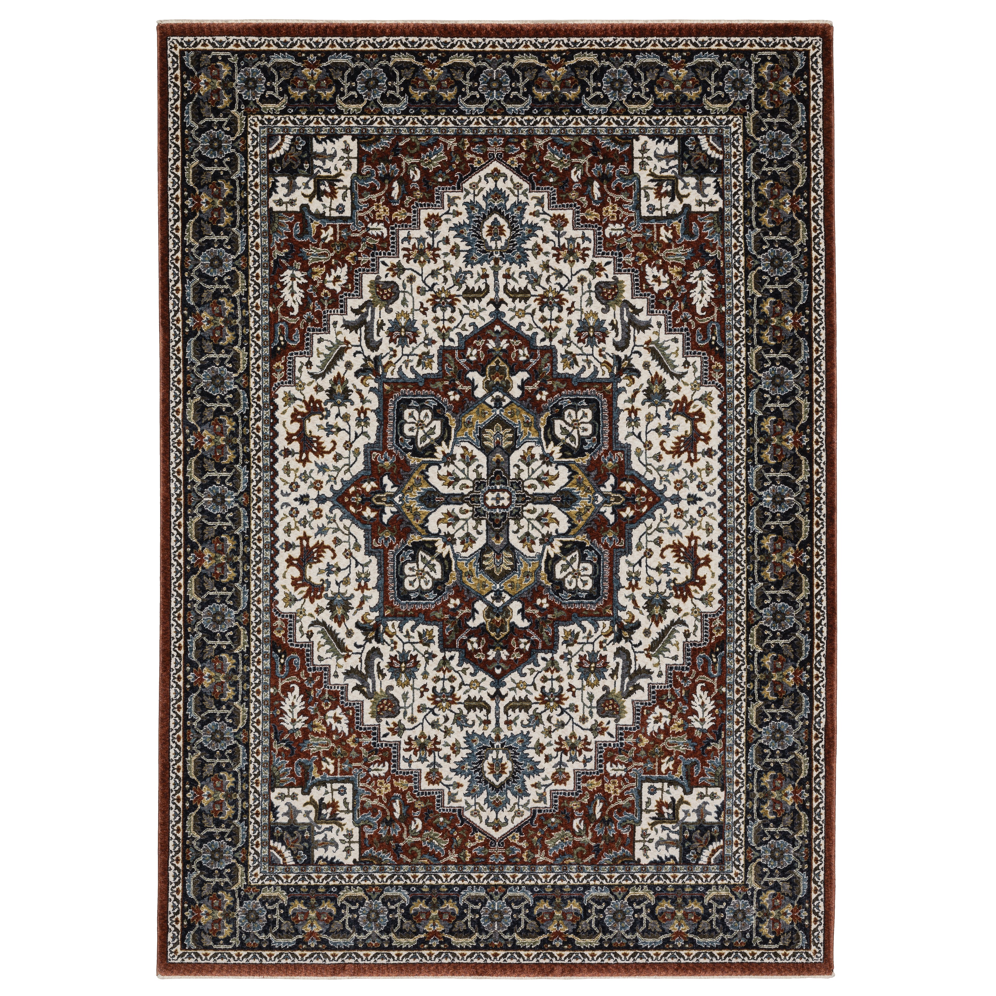 The Vivian collection is power-loomed of space dyed microfiber polyester and boasts a super soft hand with an ultra dense pile. It features an updated traditional color palette including rich brick red, vibrant gold, pristine ivory, sable brown, mossy green, and shades of blue ranging from deep Prussian to cerulean. With its traditional Persian designs and 1.5 million point construction, Vivian effortlessly adds elegance and sophistication to any room.