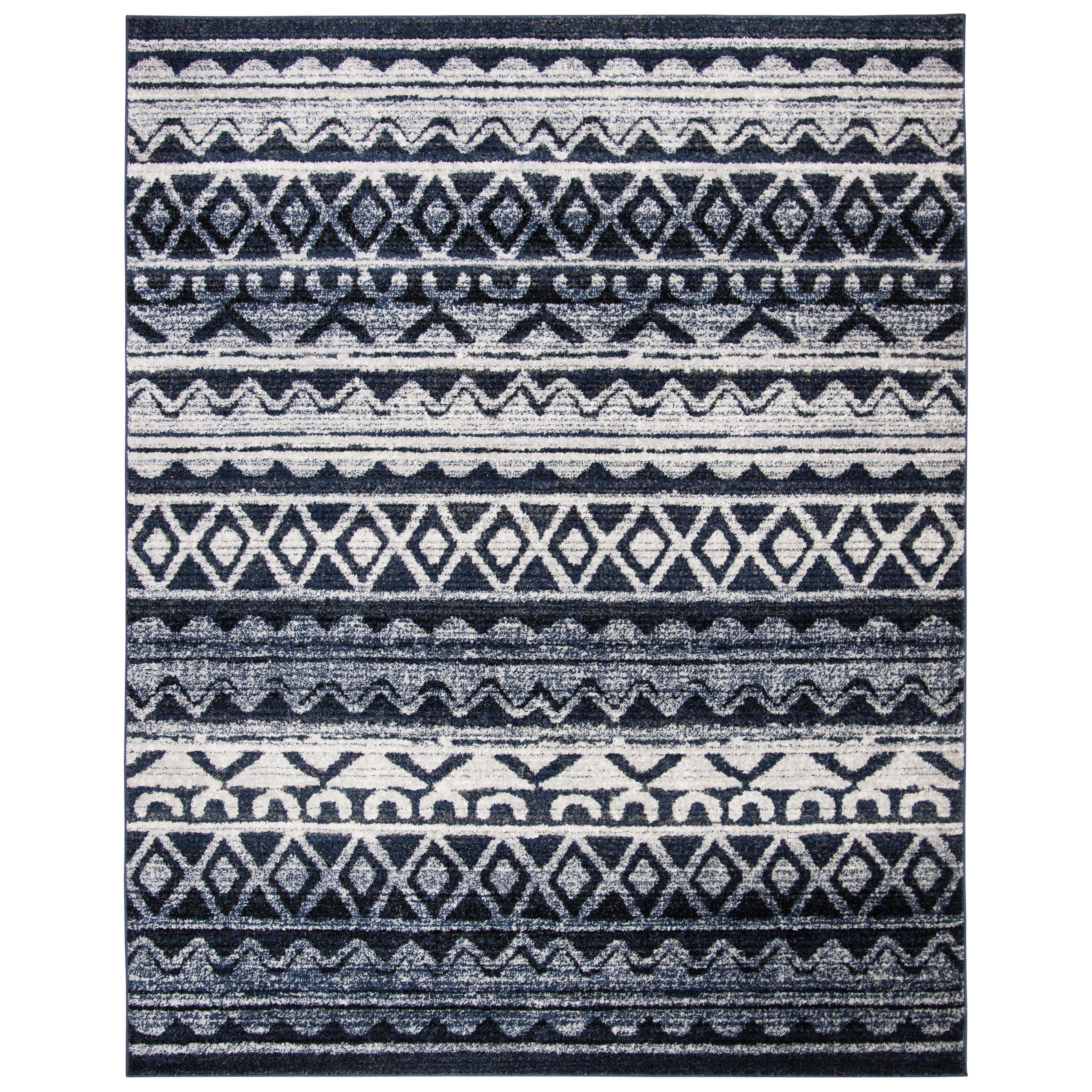 Discover the beauty of the Adirondack ADR119M Ivory Navy rug, a stunning blend of rustic charm and modern elegance. Crafted with care using durable synthetic yarns, this rug boasts a luxurious thickness of 0.43 inches, ensuring both comfort and style in any space.