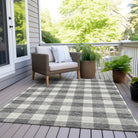 Chantille ACN923 Gray area rug, a stunning piece that effortlessly combines transitional and classic plaid styles. Its two-tone plaid pattern exudes elegance, making it a perfect addition to any indoor or outdoor space. This rug is UV stabilized, ensuring its colors stay vibrant even under the sun's rays.