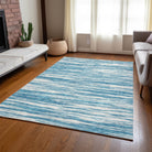 Chantille ACN951 Teal area rug, a stylish addition to your home decor. The rug features small, narrow broken stripes that give a modern twist to the classic horizontal pattern, perfect for transitional interiors. It's a stripe renaissance that combines heritage with modernity, adding a touch of sophistication to any room.