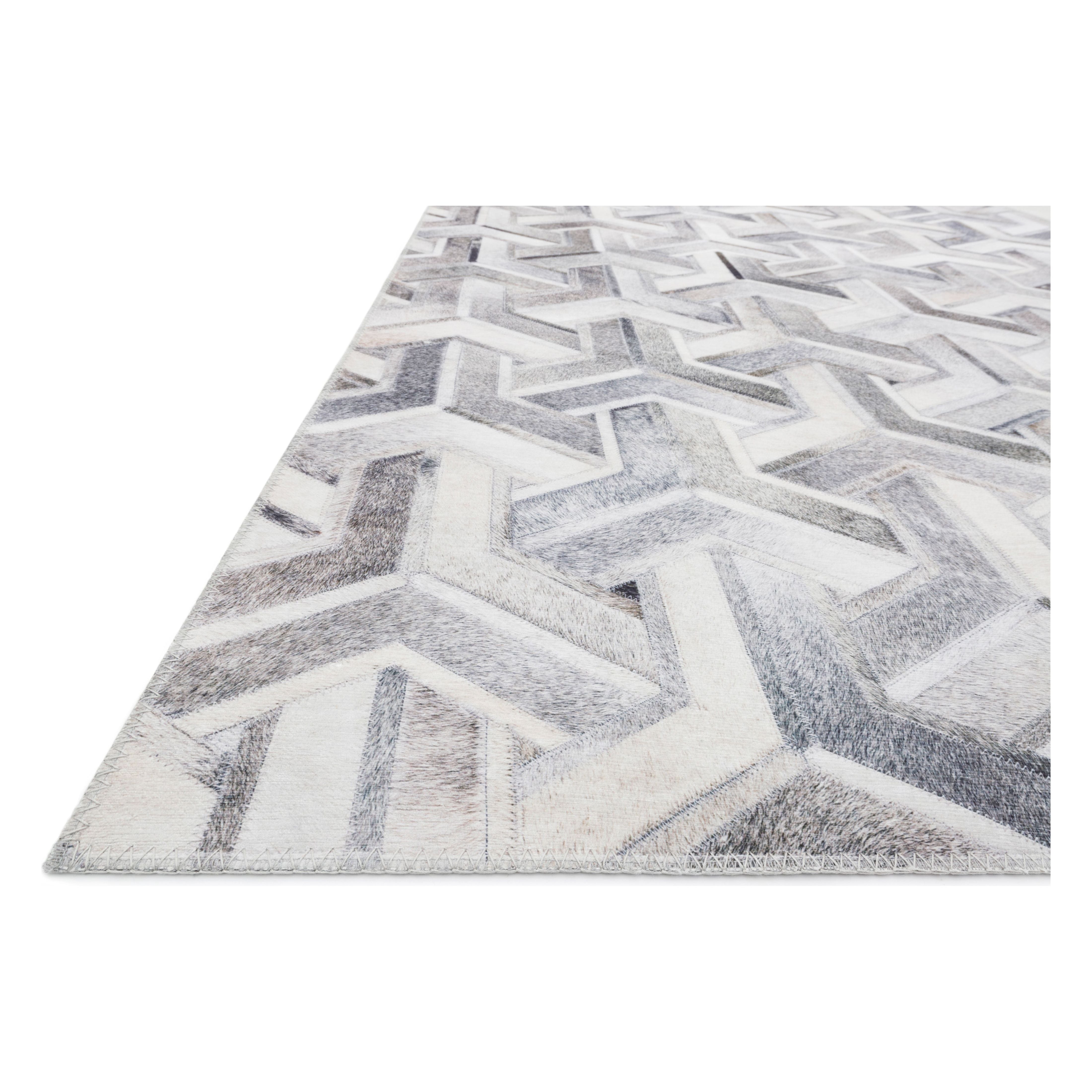 Maddox Mad 05 Silver Ivory rug, a modern and sophisticated addition to your home decor. The Maddox Collection brings you cowhide patchwork looks at a great value. Crafted with precision in China, these rugs feature printed designs that beautifully mimic the texture and detail of animal hide on a plush polyester base.