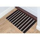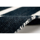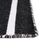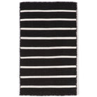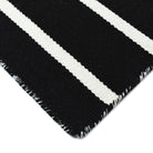 Introducing our Sorrento Pinstripe Black rug, a stylish addition to any indoor or outdoor space. The hand-woven construction showcases a trendy pinstripe pattern in vibrant blended colors against a sleek black backdrop. Crafted from durable synthetic fiber, this reversible flatweave rug is weather-resistant and perfect for high-traffic areas. Its low-profile design exudes casual elegance, making it suitable for various rooms in your home or outdoor patio.
