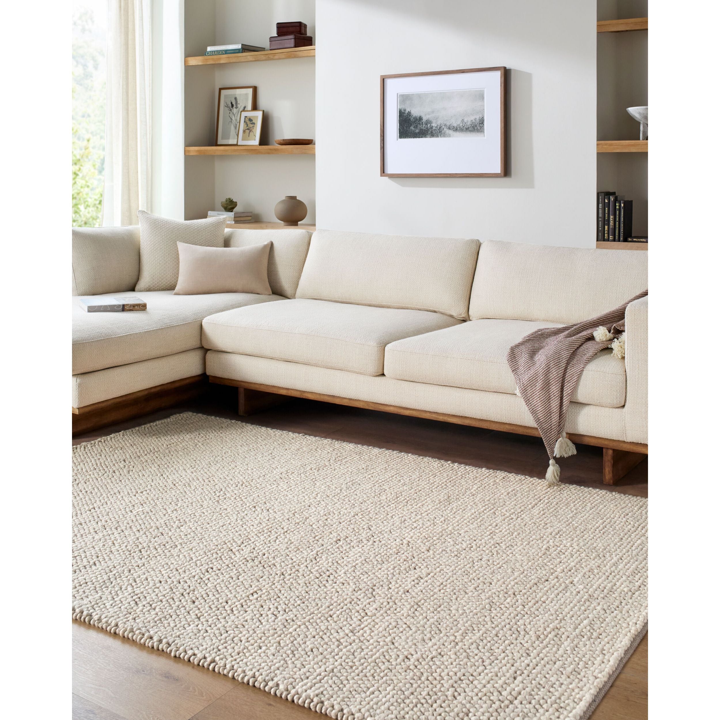 Detailed Colors: The prominent colors in this rug are: 'Ivory, Sandstone, Taupe'