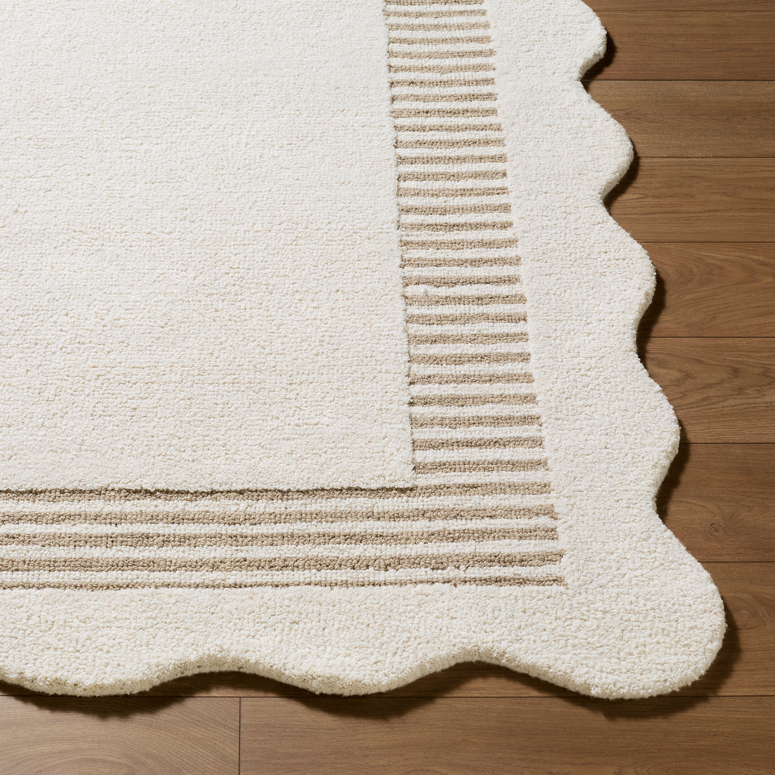 Introducing the Scalloped Collection handmade rug, where minimalist modern design meets exquisite craftsmanship. Meticulously hand tufted in India from luxurious wool, this rug promises to elevate your living space with its sophisticated allure. Its medium pile provides just the right amount of plush comfort underfoot, creating a cozy yet stylish atmosphere in any room. To ensure maximum comfort and durability, we recommend pairing it with a rug pad. Easy to maintain with simple spot cleaning using a dry cloth, this rug is both practical and beautiful?making it the perfect addition to your home decor lineup. Transform your floors into a canvas of contemporary elegance with the Scalloped Collection rug today!