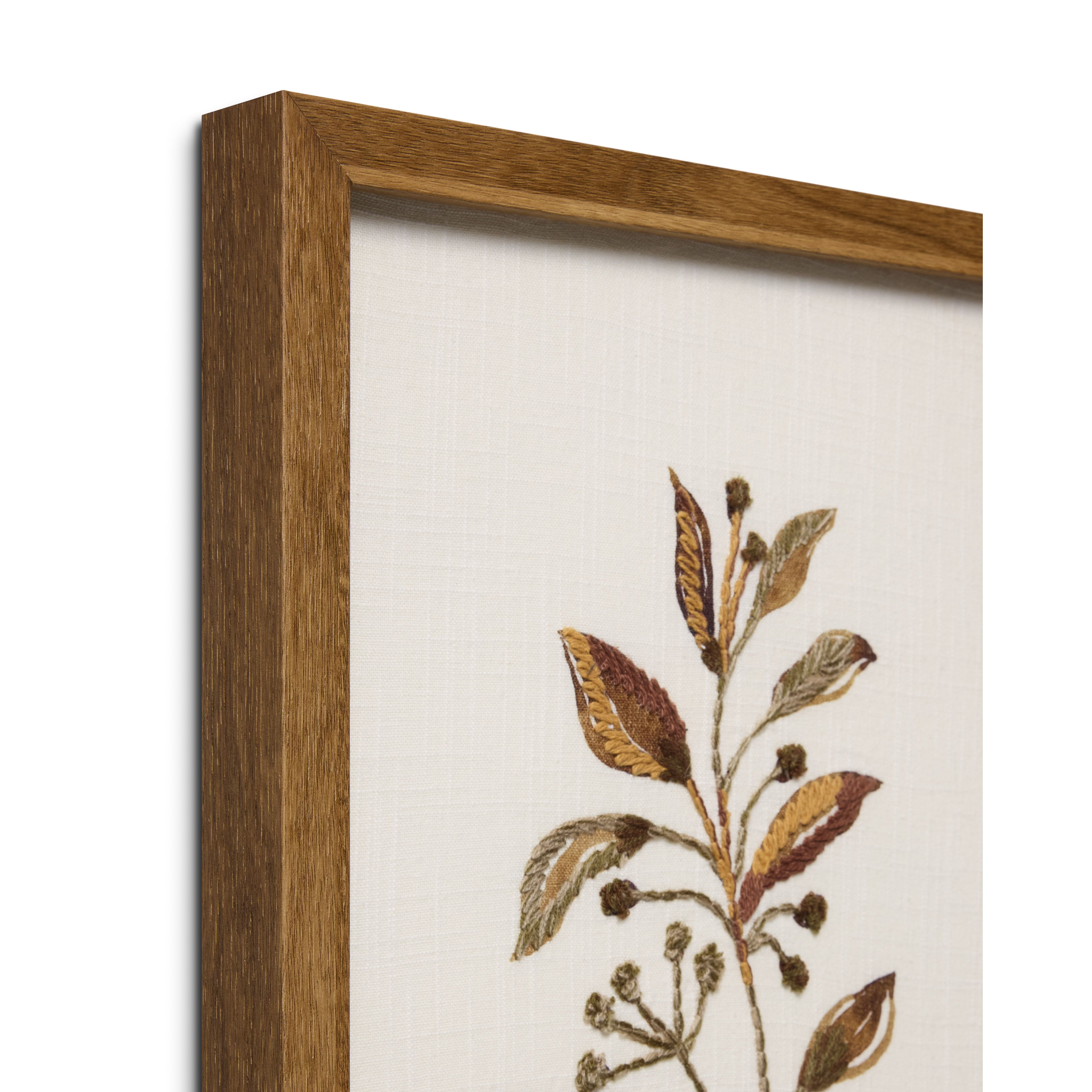 Acer is intricately embroidered wall art with a brown, botanical design, a uniquely textured accent for natural home decor. Acer is made in India from cotton and custom-framed by Loloi in the USA, measuring 15” x 12”.