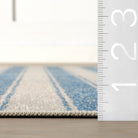 A crisp striped design brings a coastal vibe to this washable synthetic rug. It's a practical and stylish choice for any room, with a versatile look that's easy to clean and maintain.