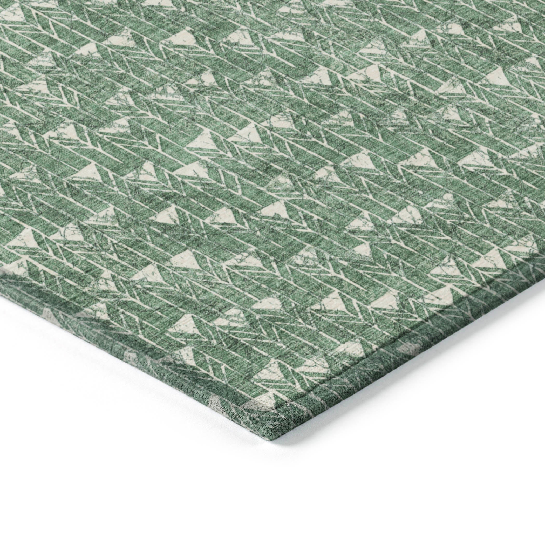 Introducing our Chantille ACN514 Green area rug, a versatile addition to your home decor. The rug boasts a distinctive geometric arrow pattern that adds a touch of modern elegance to any space. Whether used indoors or outdoors, this UV-stabilized rug is designed to withstand the elements while maintaining its vibrant colors.