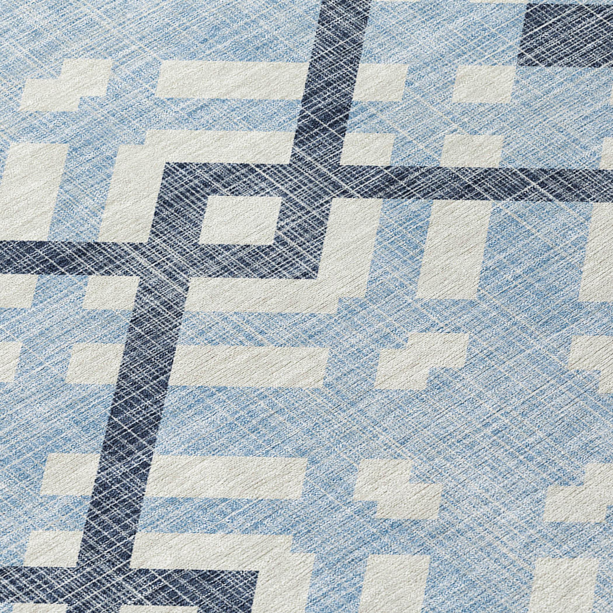 Elevate your home decor with the Chantille ACN616 Sky rug. Featuring a captivating pattern of interlocking squares and floating shapes, this transitional rug effortlessly blends classic and contemporary styles to create a visually stunning geometric landscape. Its UV-stabilized construction allows for versatile use both indoors and outdoors, making it a practical addition to any space.