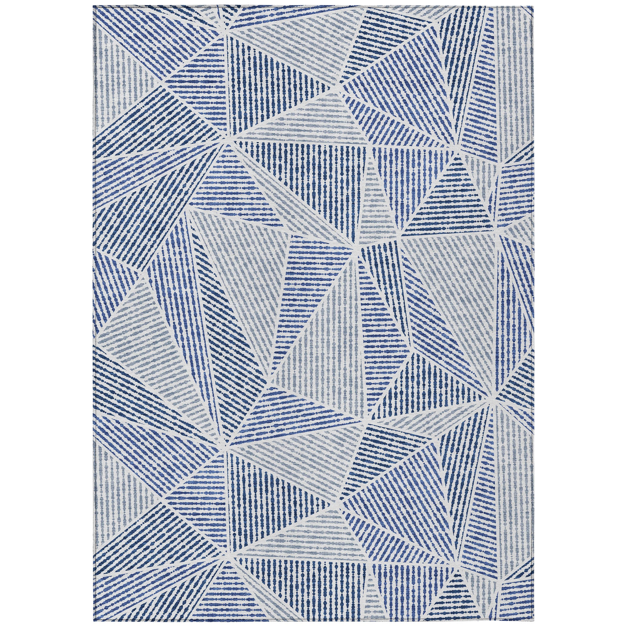 Transform your home decor with the Chantille ACN618 Navy rug. Embrace the modern sophistication of its geometric design, showcasing interconnected triangles and jagged lines that bring a contemporary flair to any room. Whether placed indoors or outdoors, this UV-stabilized rug is a versatile choice that promises long-lasting beauty.