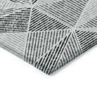 Chantille ACN618 Pewter rug, a stunning addition to enhance your home decor effortlessly. This transitional rug boasts a captivating geometric design with interconnected triangles and intricate jagged lines, adding a touch of modernity to any space. Whether indoors or outdoors, this UV-stabilized rug promises durability and style that lasts.