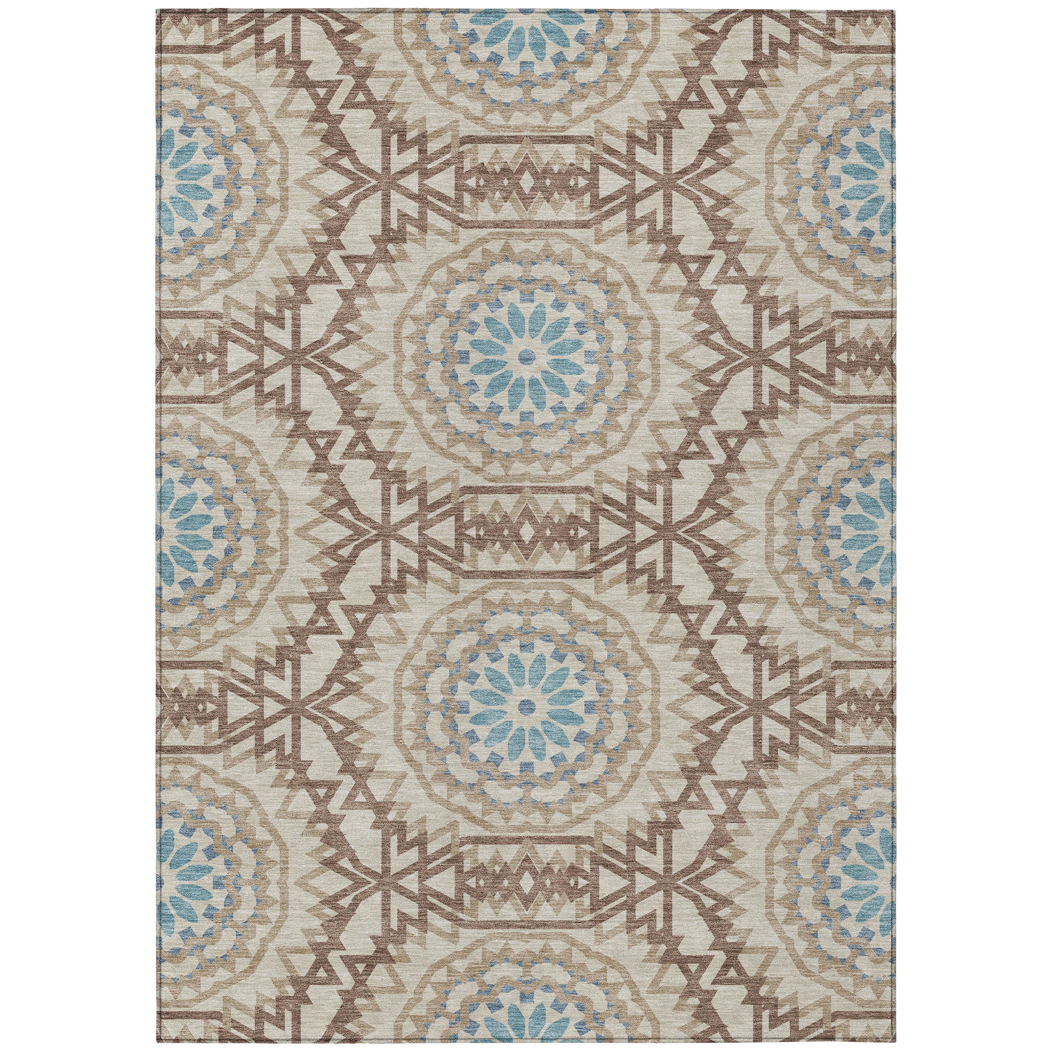 Elevate your space with the Chantille ACN619 Khaki rug that brings an air of sophistication to any room. Inspired by the mesmerizing beauty of stained glass, this transitional rug showcases interlocking medallion circles that create a harmonious focal point. Whether placed indoors or outdoors, the UV-stabilized material ensures long-lasting vibrancy and durability.