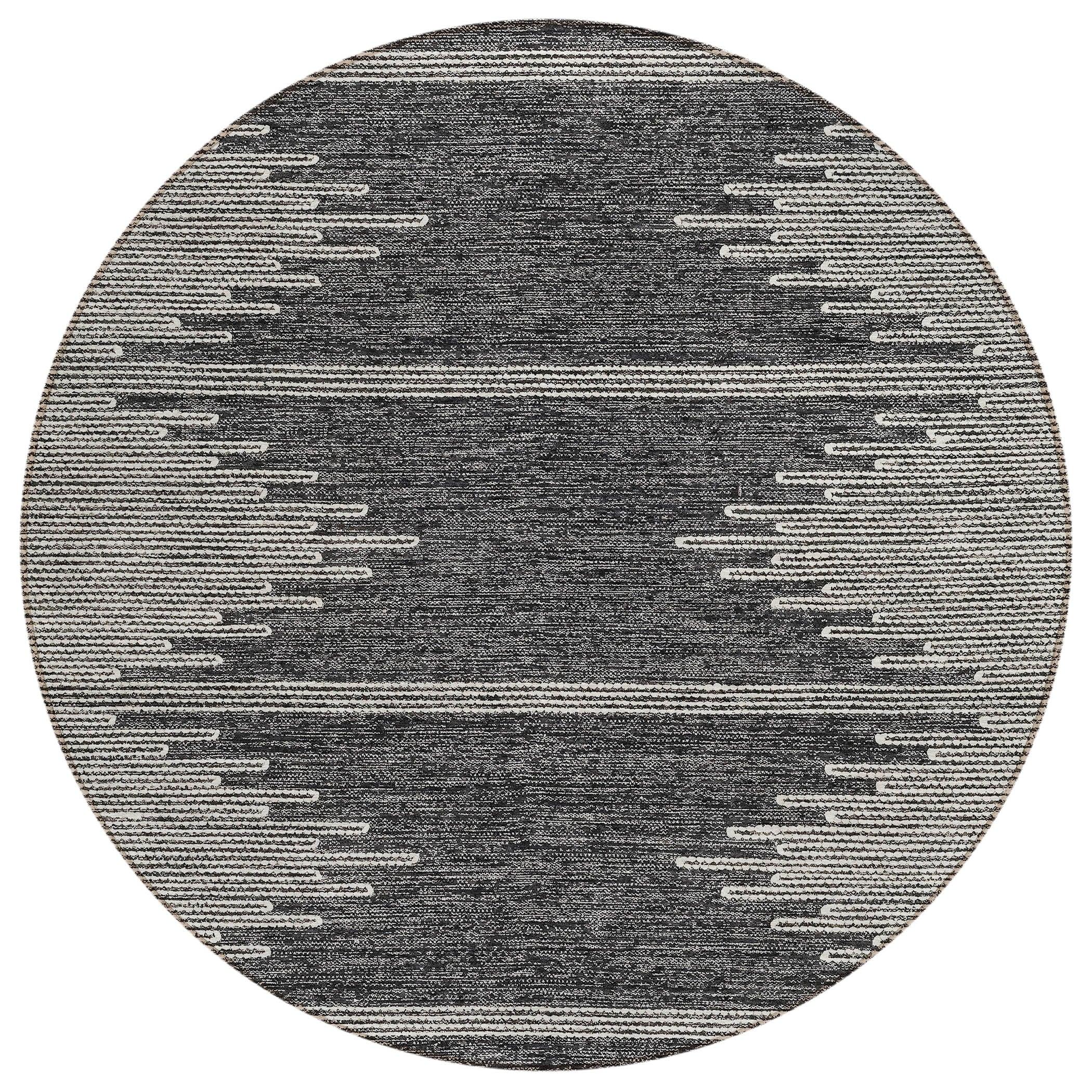 Elevate your living space with the Chantille ACN647 Charcoal rug, a perfect blend of sophistication and modern style. The rug features a captivating stretched center motif surrounded by intricate looping lines, creating a chic and elegant design. Whether used indoors or outdoors, this rug is UV-stabilized and boasts an ultra-thin construction with a non-skid backing for added safety.