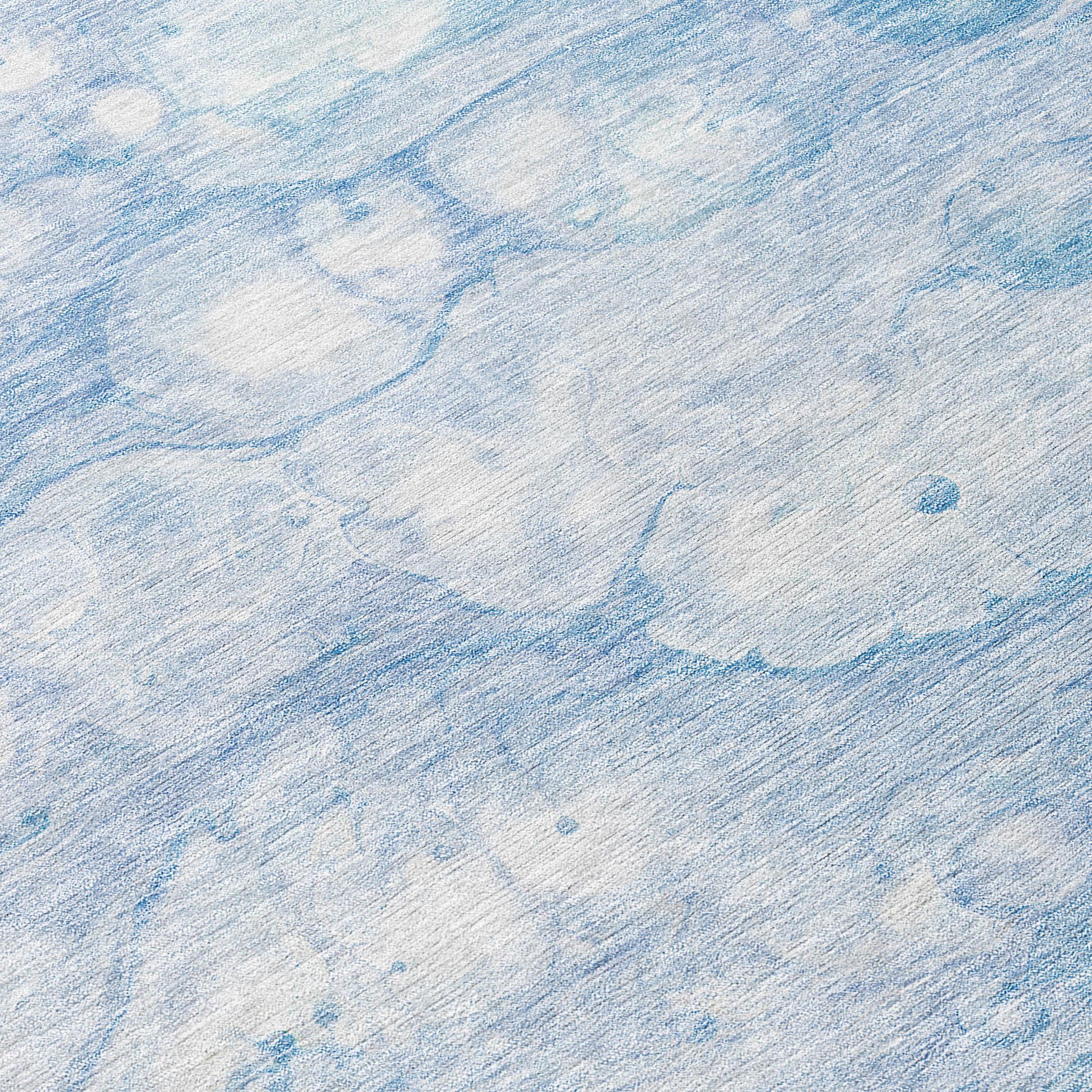 Chantille ACN699 Sky, a versatile rug that blends soft tonal hues with abstract and organic inspirations to create a serene ambiance. Crafted with UV stabilization, this transitional rug is suitable for both indoor and outdoor use. The ultra-thin design features a non-skid backing for safety and added value, making it perfect for high-traffic areas. With its machine-washable feature, maintaining the rug is effortless, making it ideal for families and pet owners alike. Add a touch of sophistication to your home with this indispensable treasure that combines style and practicality seamlessly.