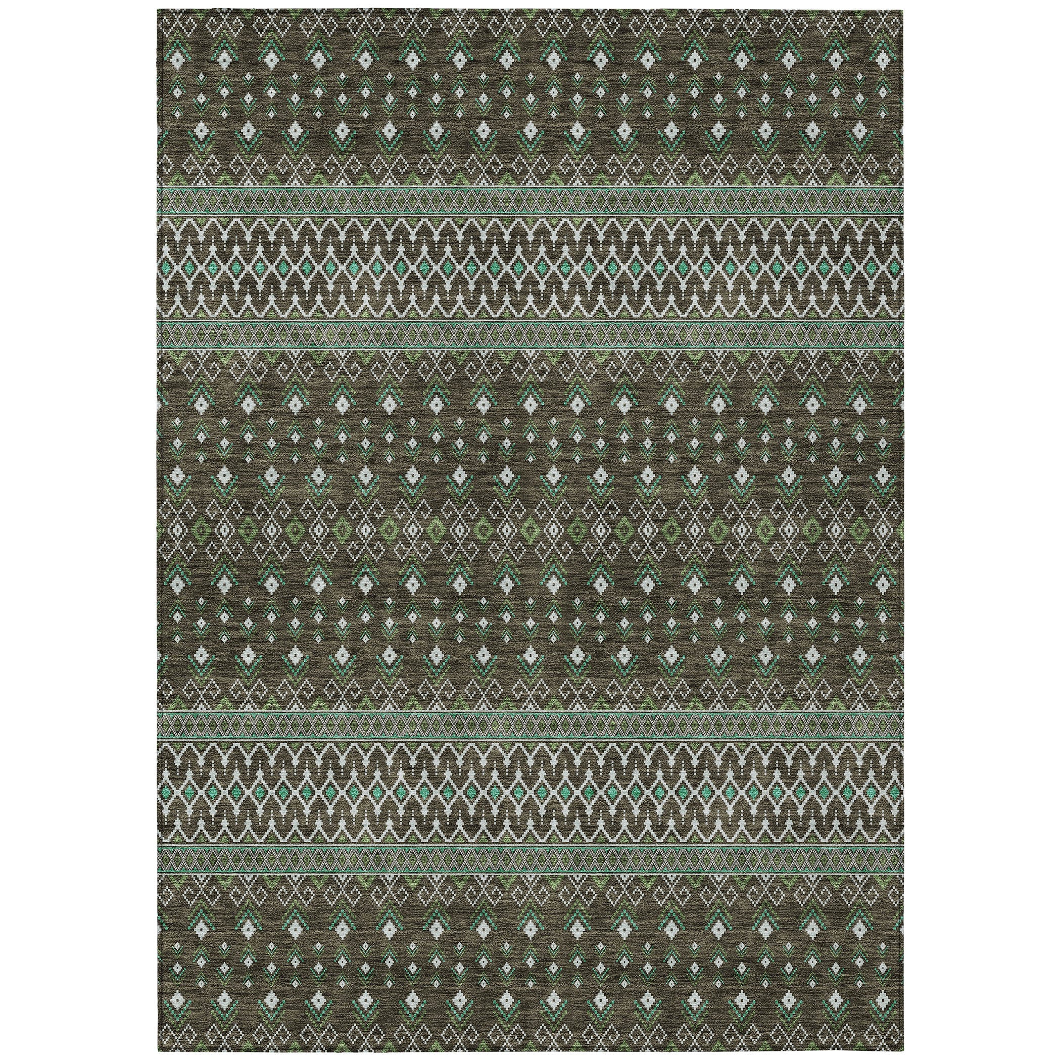Chantille ACN708 Brown rug - a delightful fusion of boho chic and transitional elegance. This rug is adorned with delicate diamonds, embodying the free-spirited essence of bohemian decor. Whether placed under a living room chandelier or out in the sunlit backyard, this rug is designed to captivate with its versatile style.