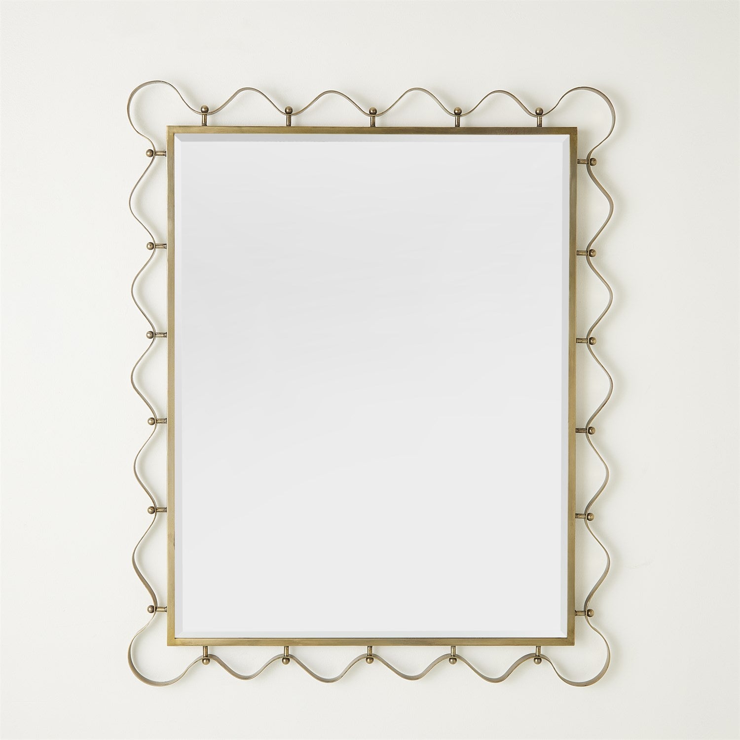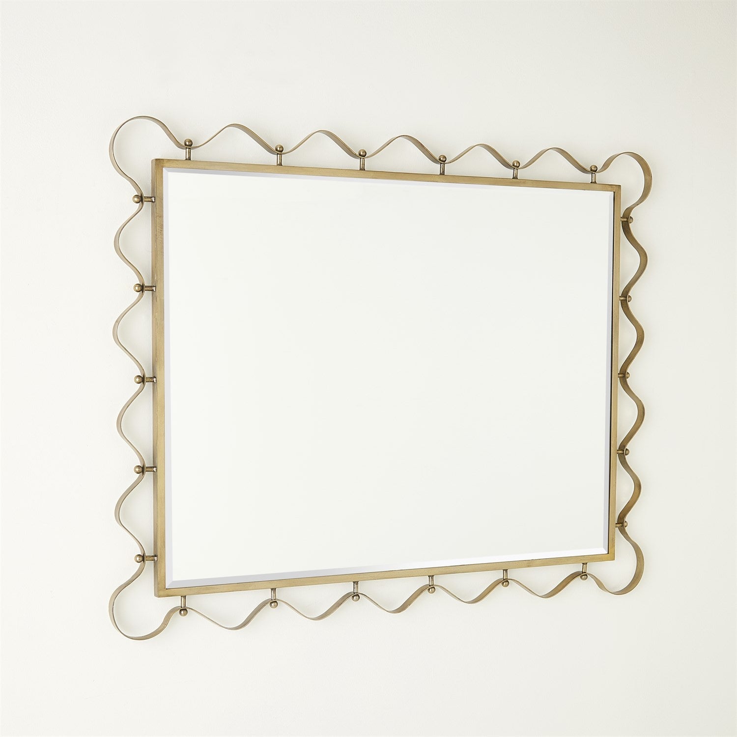 Step into a world of design history with this brass mirror, reminiscent of the captivating designs by Royère and the French Masters. Crafted with meticulous attention to detail, The Les Vagues Mirror by Lemieux Et Cie features graceful iron curves with a brass finish that gives an aura of elegance and sophistication. Seeing the beauty of the beholder, this mirror becomes more than just a reflection; it becomes a portal to the design and elegance of the past.