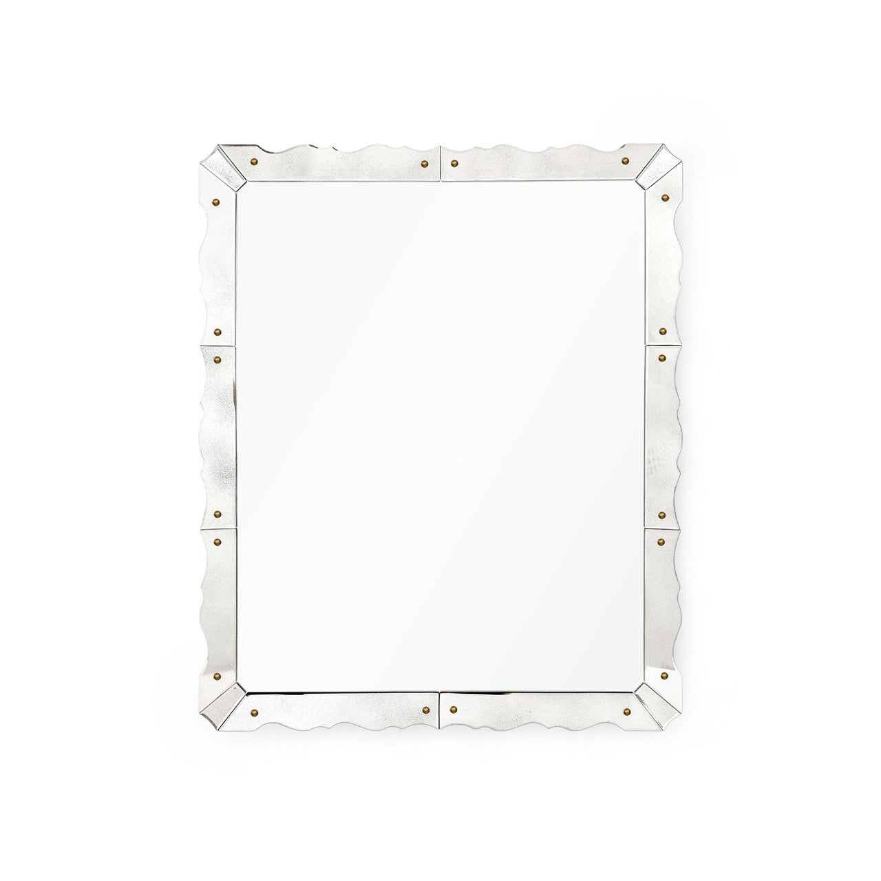 Antique finishes and hardware studs make the larger-scale Caroline Mirror feel like a find from a grand pied-à-terre in Paris, Venetian apartment, or socialite’s drawing room circa the 1940s. The stand-out piece glimmers with an elegantly cut and beveled glass border, finished in an antique style, with four corner keystones and shining brass cabochons. With a durable wood backing and D-rings for both horizontal and vertical installation, the Caroline is crown jewel that’s meant to last in your home for years to come. We trust you’ll give it the spotlight it deserves.
