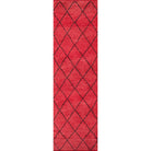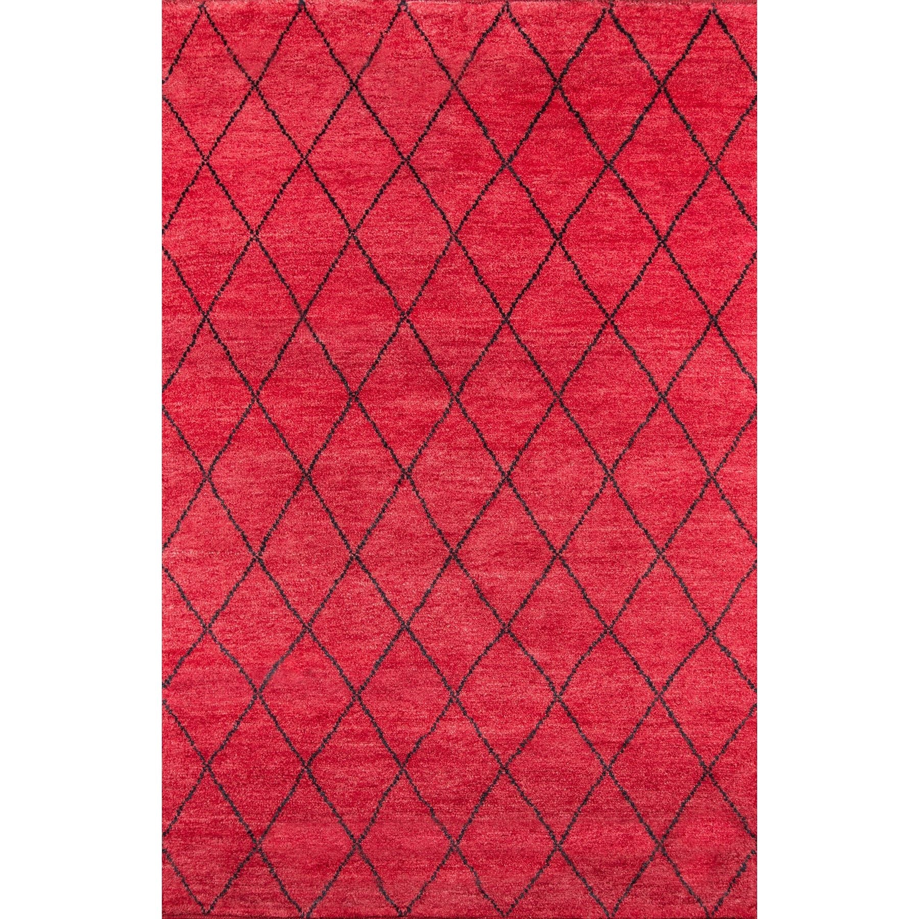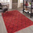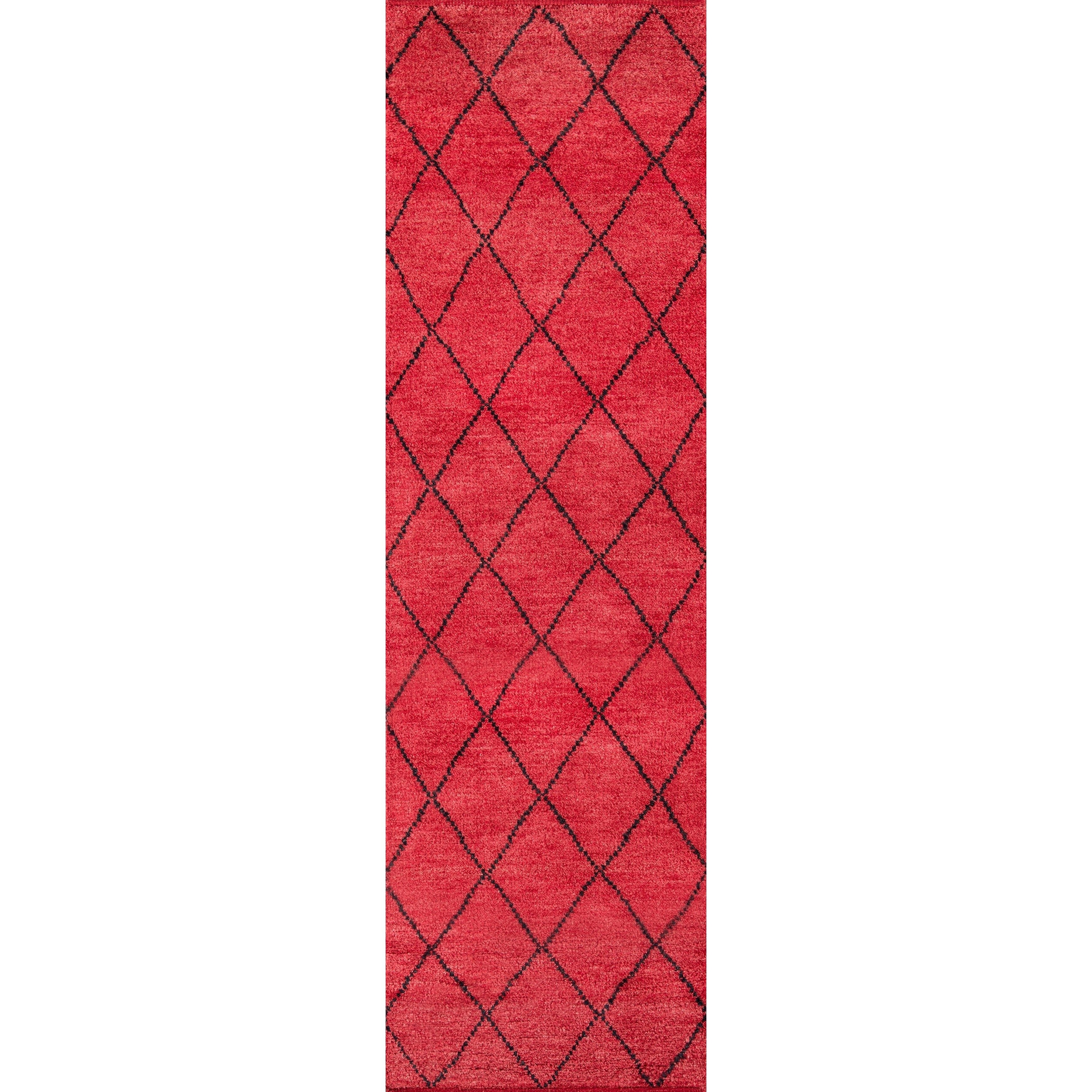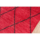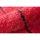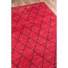 Atlas Atl 5 Red, a stunning decorative floorcovering that draws inspiration from the intricate designs of traditional Moroccan rag rugs. This modern interpretation features chic geometric patterns, repeating diamonds, and exotic icons in a captivating blend of soft neutrals and vibrant primary colors.