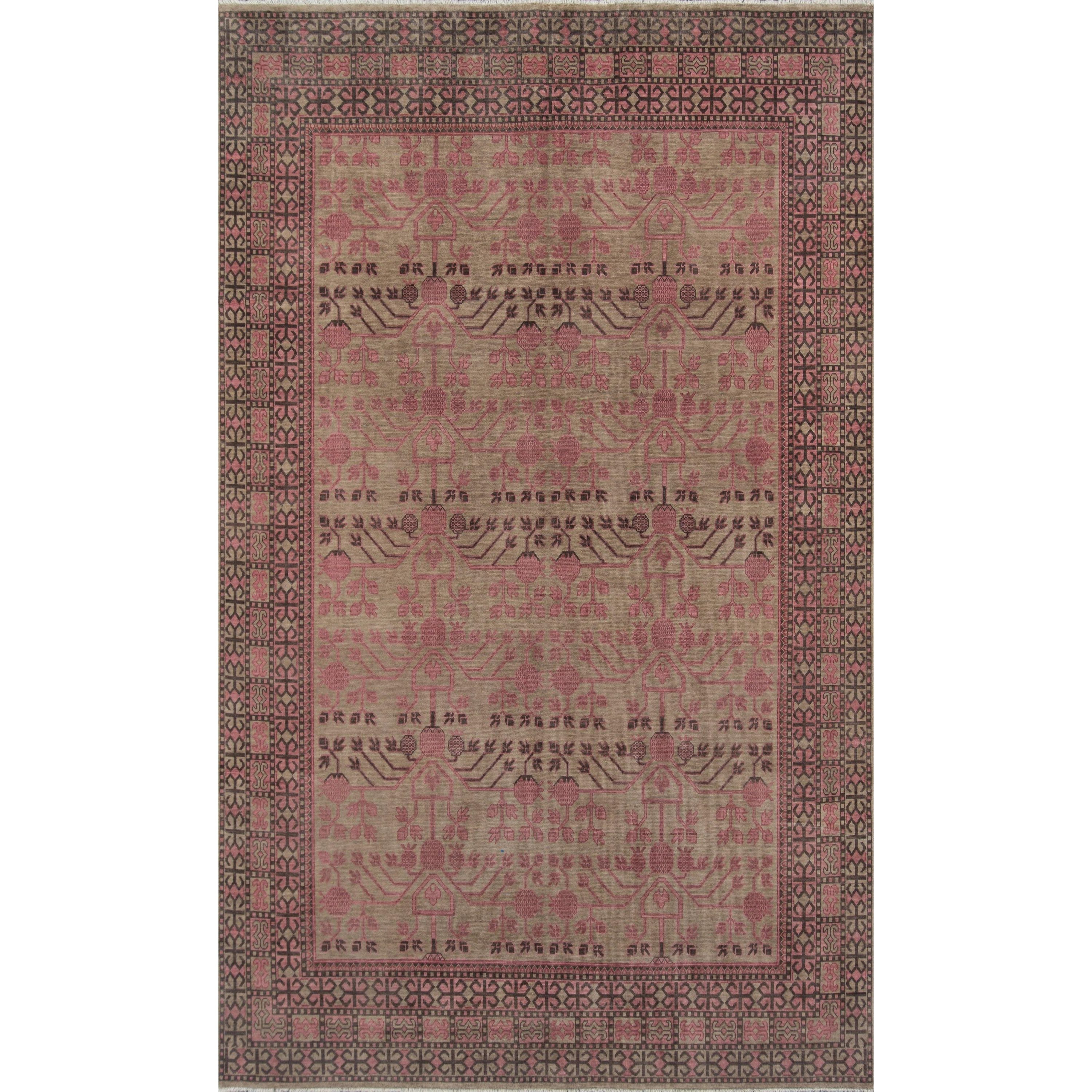Banaras Bnr 5 Pink, a stunning traditional area rug collection infused with centuries of artisanal craftsmanship. Each rug is meticulously hand-knotted from natural wool fibers, creating a vintage tapestry feel that exudes elegance and charm. The ornamental patterns feature Old World palmette, flower, vine, and boteh motifs that harken back to the rugs' decorative origins.