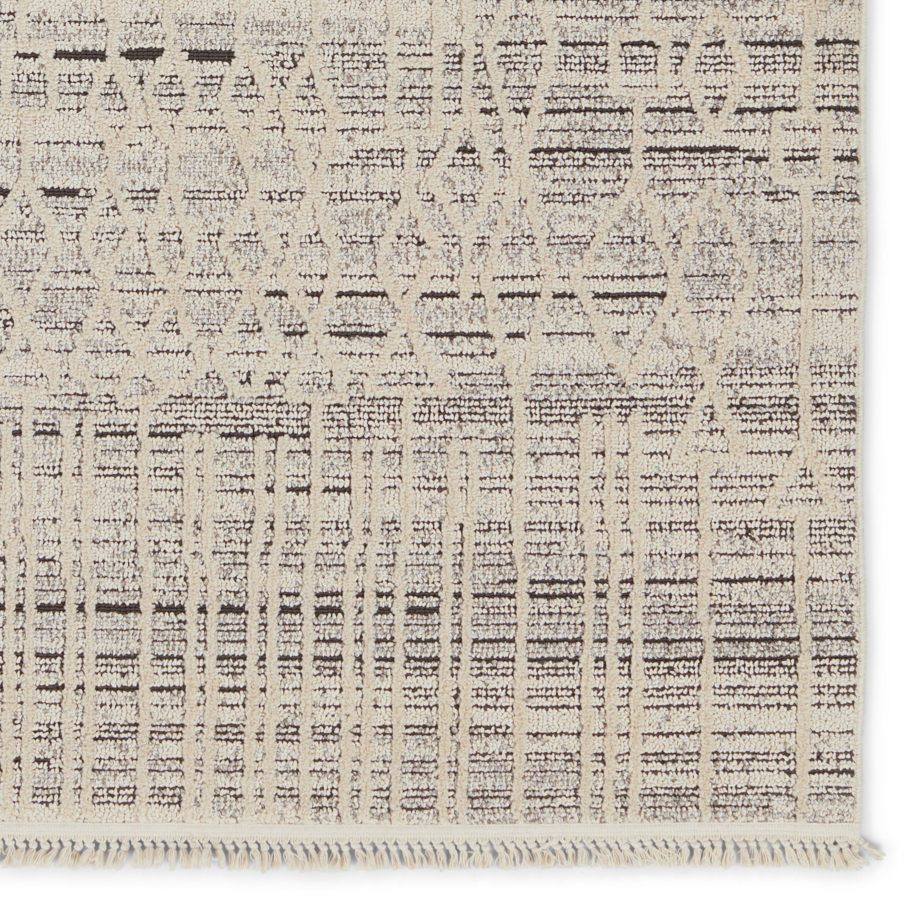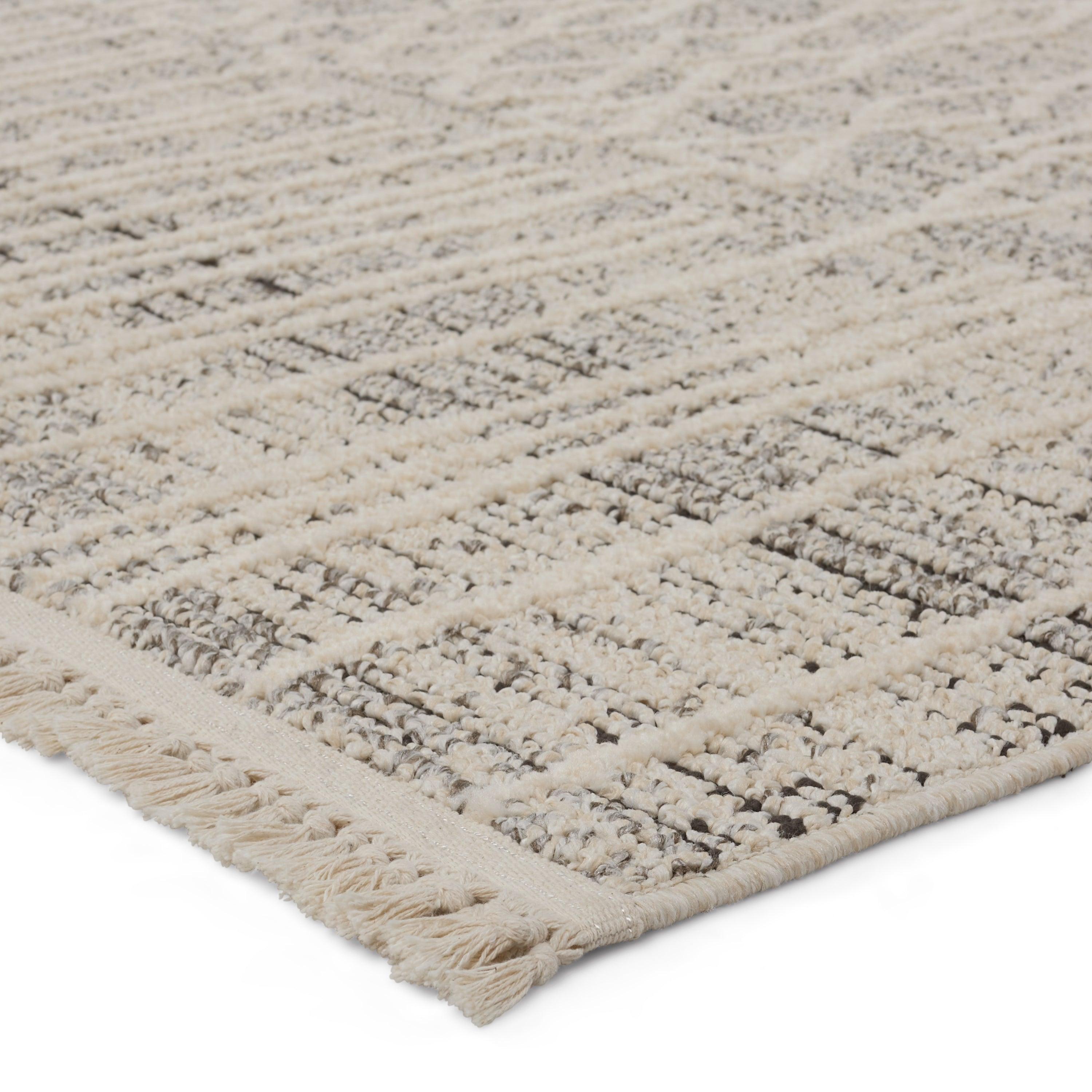 The Lore collection introduces an assortment of modern Moroccan motifs and unique texture that grounds spaces with statement-making style. The Caiya area rug features distressed trellis designs, cut and looped pile, and cream, fringe. The contrasting neutral tones of cream and gray offer the perfect anchor to contemporary design. This indoor rug thrives in medium and low traffic spaces of the home such as bedrooms, dining areas, formal living rooms, and guest areas.