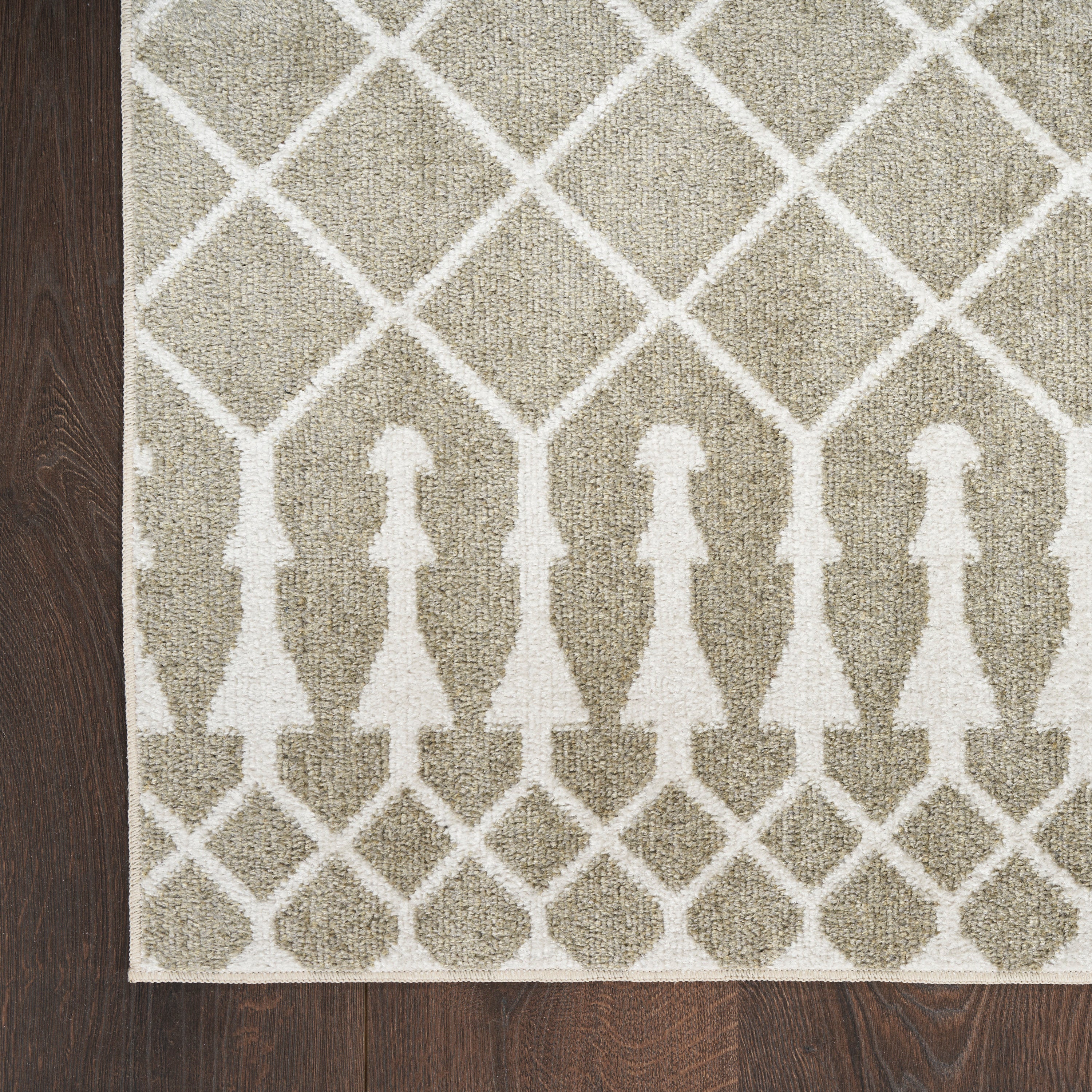 Bring global style home with this boho chic rug from the Astra Machine Washable Collection. Presented in sage green and ivory, the classic Moroccan trellis pattern is finished with a vibrant sheen that shifts in tone under different light. This machine-washable rug beautifully complements modern and farmhouse décor.