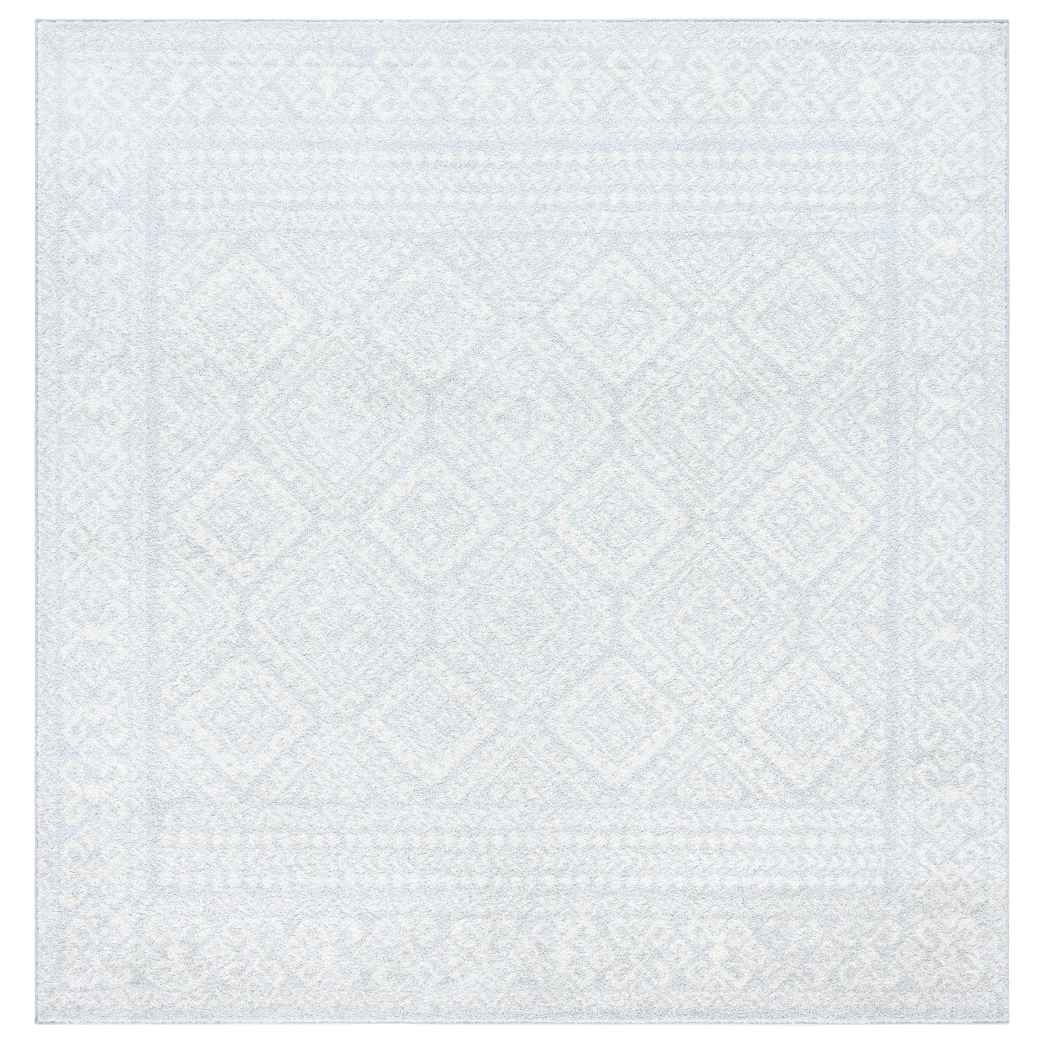 Tulum TUL264G area rug from the Tulum Collection by SAFAVIEH, featuring soft hues and rustic patterns for a refreshing and modern look. These boho-chic rugs blend contemporary colors with traditional craft art designs to bring warmth and charm to any room. Crafted with soft synthetic yarns, the Tulum rug offers both a unique aesthetic and a cozy feel underfoot, with an approximate thickness of 0.4 inches.