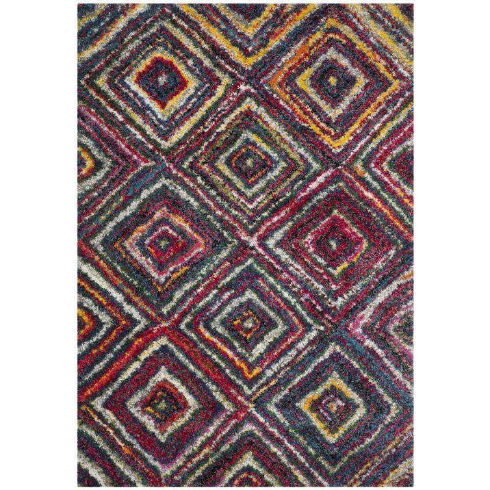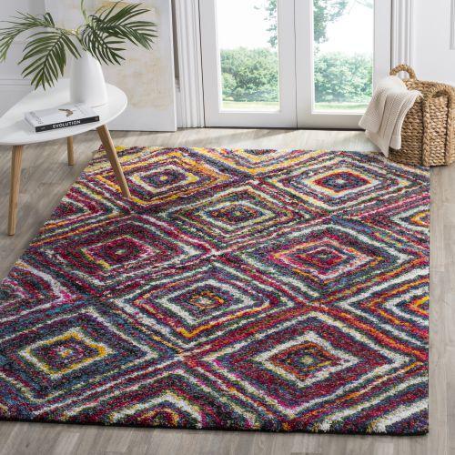 Fiesta Shag FSG384M, a vibrant and playful addition to any room. The whimsical circle motifs stand out against the plush pile, creating a striking visual effect. With a rainbow of colors and textures, this shag rug brings a lively energy to your space. Crafted with durable synthetic yarns through power-loomed construction, this rug is perfect for high-traffic areas like kids' bedrooms, playrooms, or casual family rooms. Its bright and beautiful design will add a touch of fun and comfort that will last for years to come.