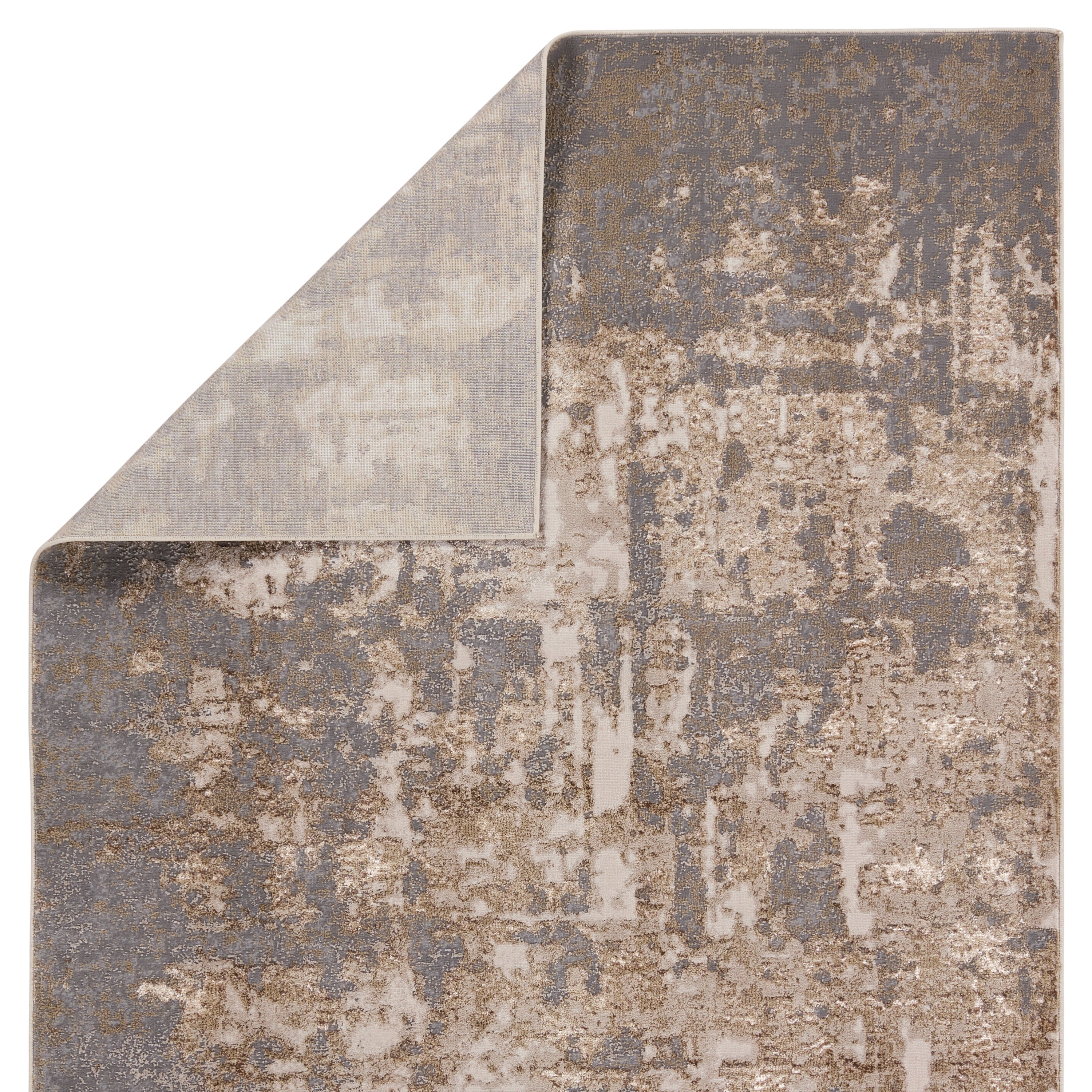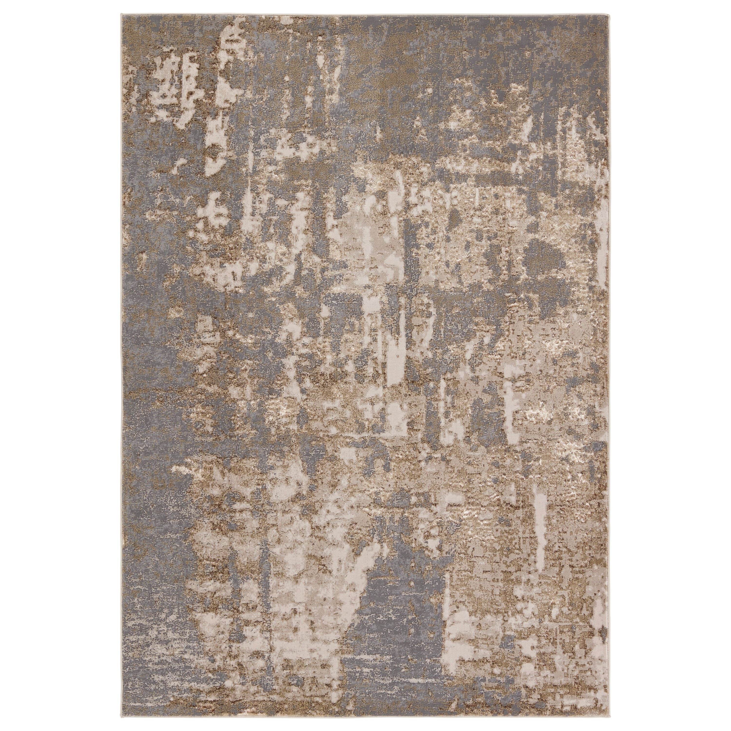 The show-stopping yet surprisingly versatile appeal of the Catalyst collection brings contemporary edge to any home. The organic abstract design of the Raistlin rug creates a dynamic and shimmering statement in tones of gold, gray, brown, and cream. This power-loomed rug features metallic polyester fibers blended with stain-resistant polypropylene for a brilliant sheen from various perspectives. This area rug withstands high traffic areas of the home such as living rooms, halls, and entryways.