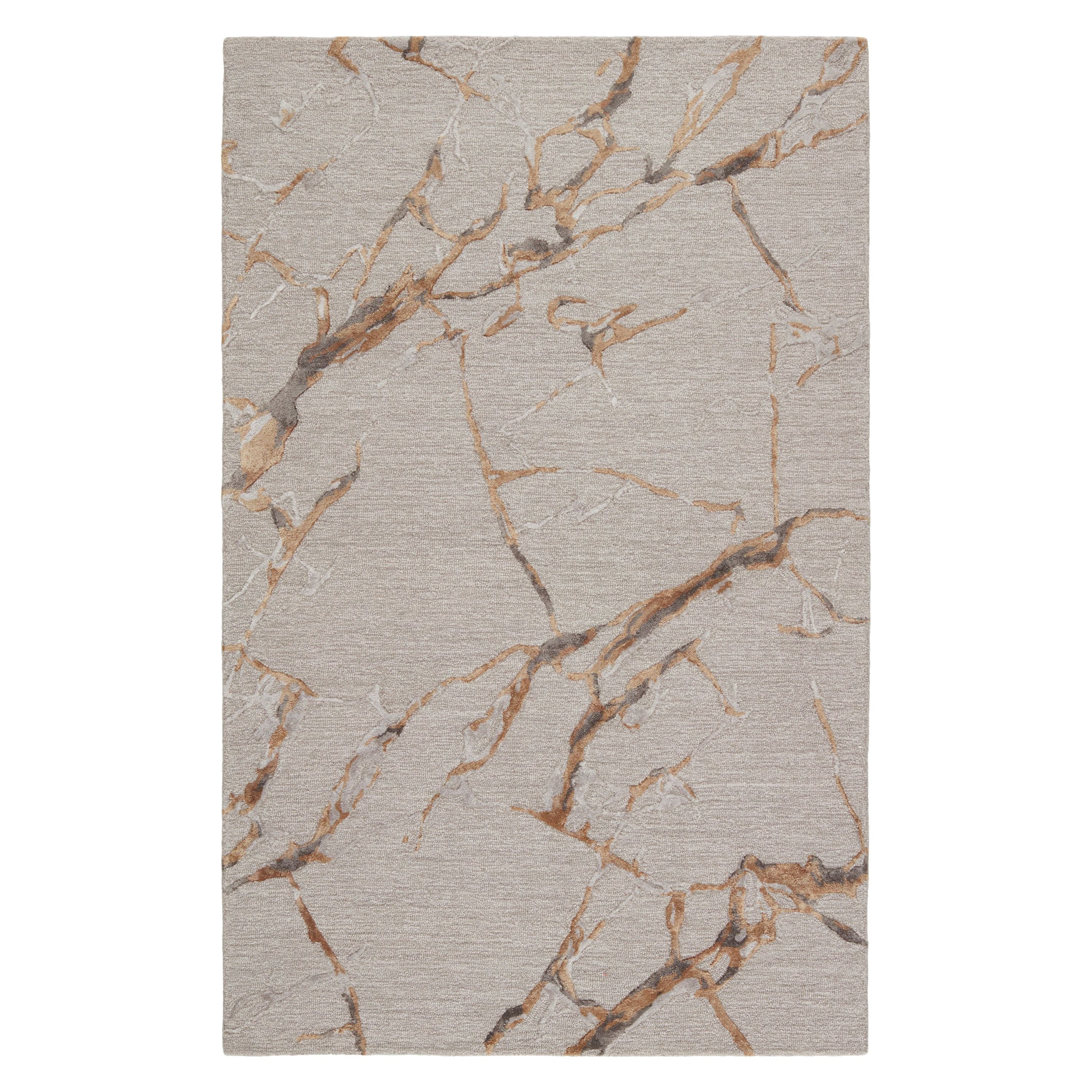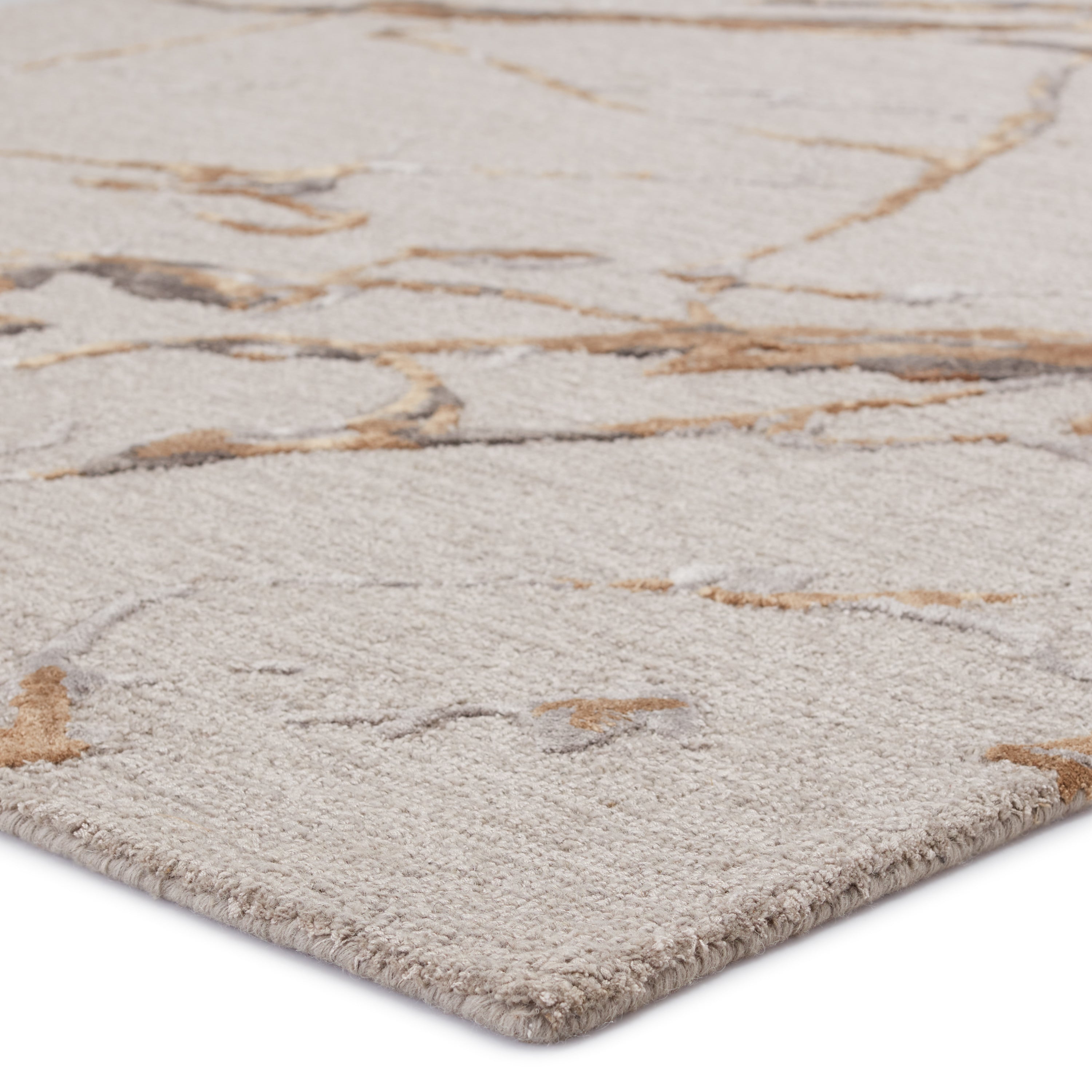 The hand-tufted Fragment collection features nature and mineral-inspired motifs that offer the perfect patterned intrigue to modern spaces. The Shattered rug features a fractured abstract design in a neutral colorway of gray, gold, and taupe. The striated cut and looped pile combines with a luxe wool-viscose blend for a stunning range of texture, luster, and dimension.