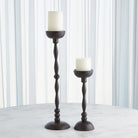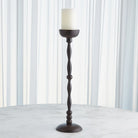 The Achille Candle Holder combines the strength of hand-forged metalwork with delicate and intricate details. The dark finish enhances the ornate beaded design. This candle holder is a captivating centerpiece that adds a touch of design and decoration to any space.