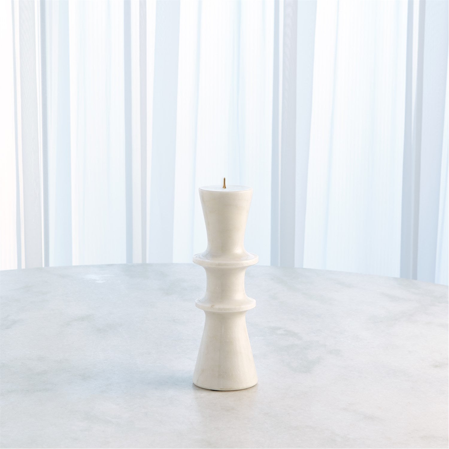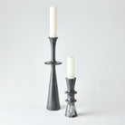 The Double Flair Candle Stand is made of hand formed marble with an iron candle spike.