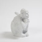 The Arete Collection is renowned for magnificently carved and hand-crafted home furnishings. This exclusive collection for William D Scott consists of nature-inspired accessories. This cast aluminum sculpture is covered in a matte white finish and resembles a monkey resting in a squatting position. Felt tabs on the bottom of the sculpture help to protect any surface this piece rests upon.