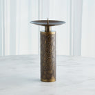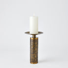 With hand-applied details, the Paten Candle Holders are made of iron with antique brass finish. Offered in three sizes, each holding a 4"Dia. pillar candle.