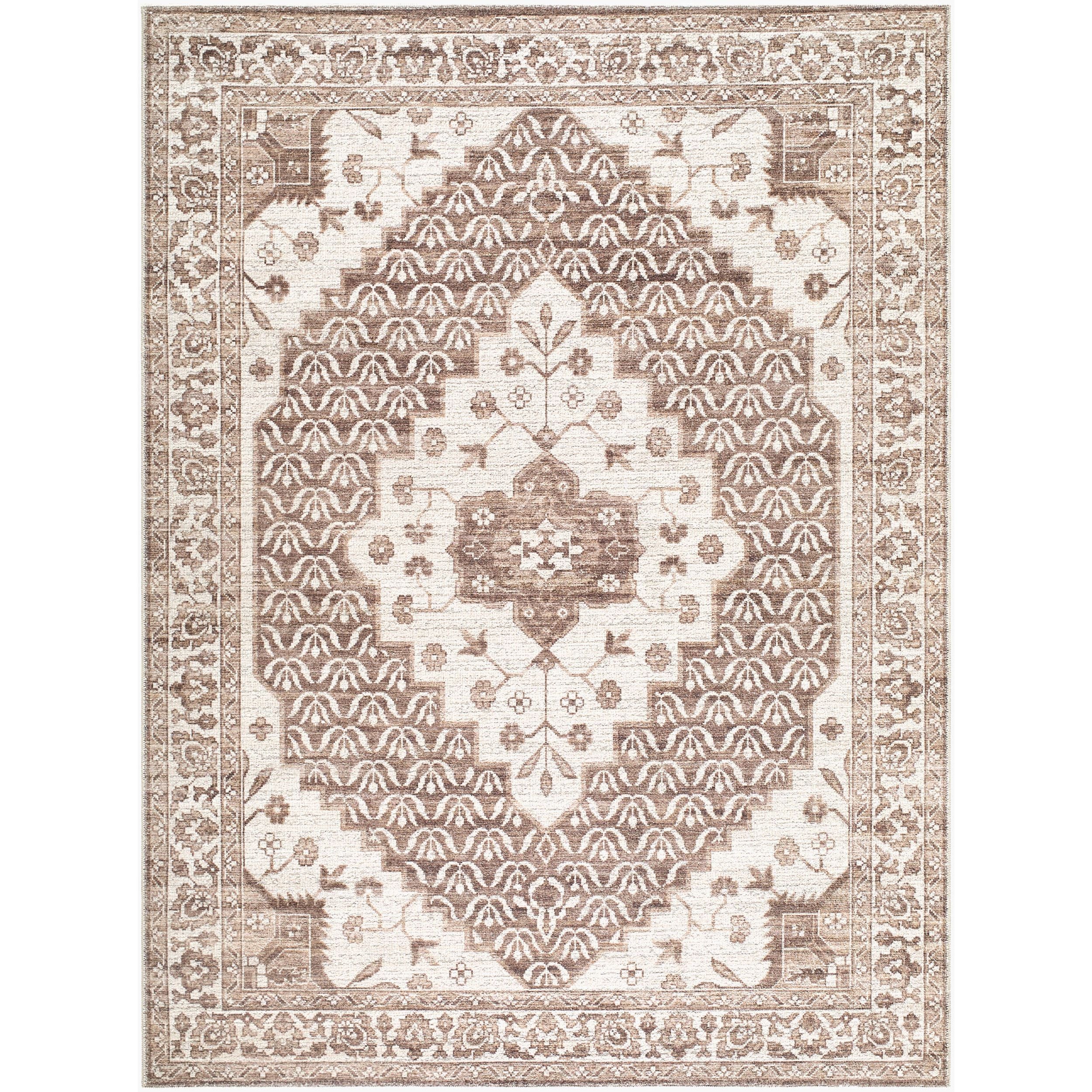 Introducing the Athiyo area rug, where updated traditional style meets modern convenience. Crafted with a meticulous blend of cotton and polyester, this machine-woven masterpiece from Turkey is designed to withstand the rigors of high-traffic areas while maintaining its elegant allure. The medium pile offers just the right balance of comfort and durability, ensuring your space feels cozy yet resilient. Pair it with a rug pad for added stability and safety underfoot. Caring for this exquisite piece is a breeze?simply spot clean with mild detergent to keep it looking fresh and inviting. Transform your living space into a harmonious haven with the timeless charm of the Athiyo area rug.