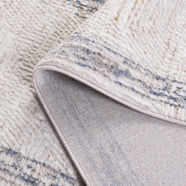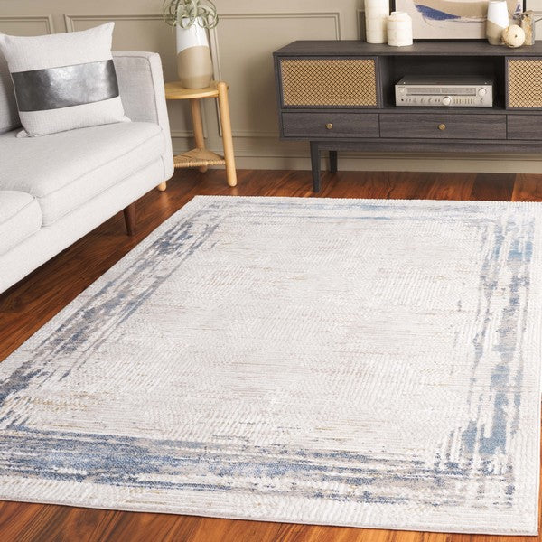 Prestige PTE126A Ivory Blue rug, a stylish addition to any room. This collection boasts a variety of contemporary designs and trendy color combinations that effortlessly elevate your space. Crafted with soft synthetic yarns in a medium cut pile, these rugs are not only luxurious but also durable, making them perfect for busy households.