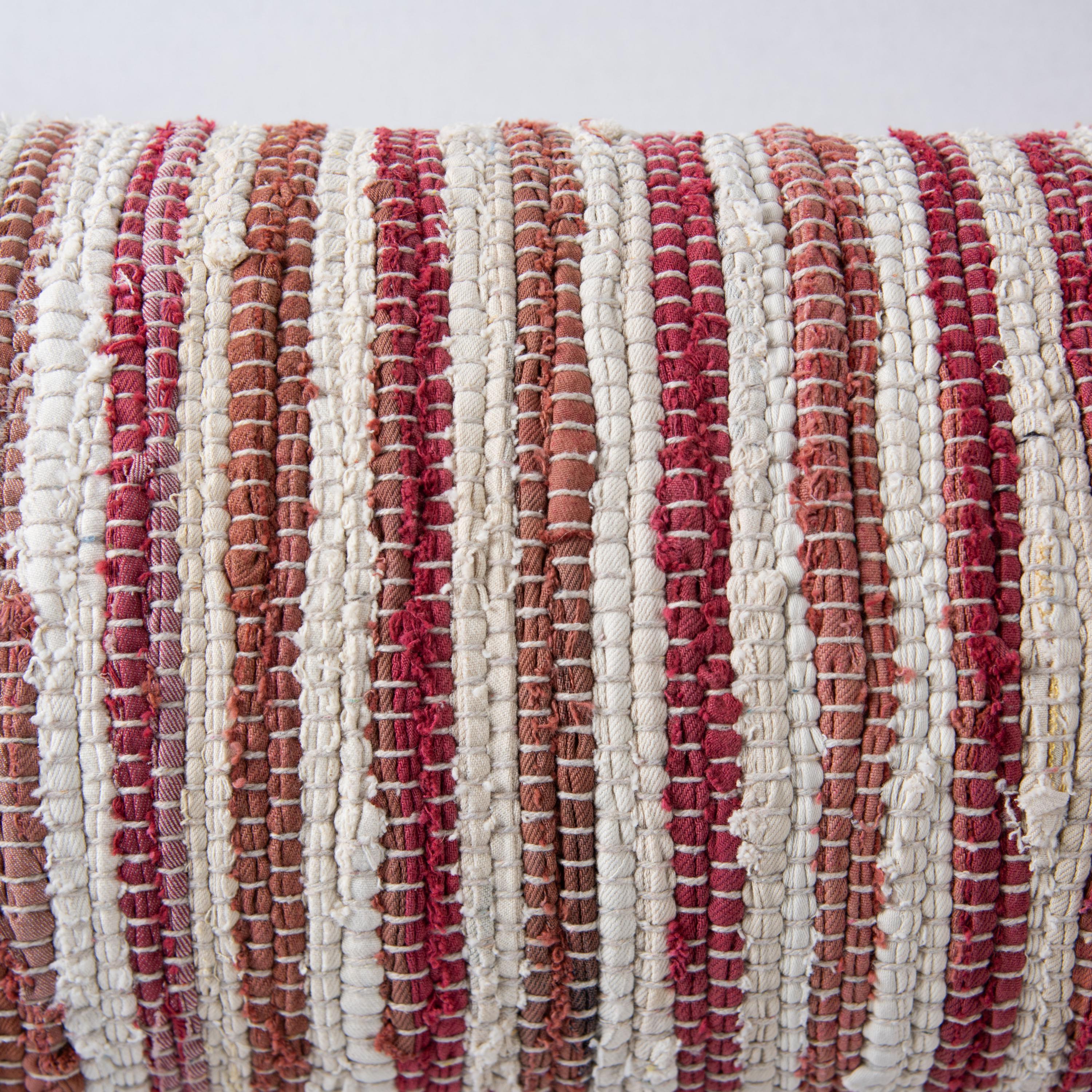 Your favorite jeans may have traded their seams for stripes in this hand-crafted, pillow cover with an eco-conscious mission. The textured surface tells a story of repurposed denims, blending natural and vibrant berry hues for a palette that feels both harmonious and unique. The reverse side features a solid cotton canvas, complete with a hidden zipper closure for a seamless finish, while knife-edge detailing and playful corner tassels add an artisanal fl ourish. Designed with intention, this pillow cover is not only a unique work of art but also a purposeful effort to transform garment waste into something beautiful, keeping discarded denim from polluting our planet. Each piece refl ects Rizzy Home's dedication to craftsmanship, creativity, and care for the environment.