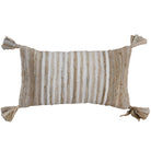 Your favorite jeans may have traded their seams for stripes in this hand-crafted, pillow cover with an eco-conscious mission. The reverse side features a solid cotton canvas, complete with a hidden zipper closure for a seamless fi nish, while knife-edge detailing and playful corner tassels add an artisanal flourish. Designed with intention, this pillow cover is not only a unique work of art but also a purposeful effort to transform garment waste into something beautiful, keeping discarded denim from polluting our planet. Each piece reflects Rizzy Home's dedication to craftsmanship, creativity, and care for the environment.