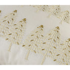Crafted from 100% cotton in a soft ivory tone, it features delicately hand-embroidered rows of trees, kissed with gold metallic overstitching to evoke a frost-covered forest. The subtle shimmer adds just the right touch of seasonal sparkle, and the knife-edge finish makes for a crisp silhouette.