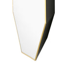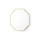 A minimalist reflection of geometric glamour. The Eaves Mirror shines with simplicity, adorned only with its slim and polished brass-finished frame. However, its bold, octagonal shape instantly stands out. The mirror itself adds light and the illusion of extra space in any room, along with unique dimensionality—its black lacquered back boasts three-dimensional depth and geometric facets of its own, allowing the piece to appear as if it were bursting from your wall. Its facade may be smooth, but the Eaves definitely doesn’t fall flat.
