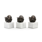 The Mouse Statue Set of 3 features three petite mice representing the famed "see no evil, hear no evil, speak no evil" gestures. Available in bronze and gold leaf, each mouse sits on a white marble base. This playful set adds charm and character to any space, making it a delightful conversation starter for shelves, desks, or side tables.