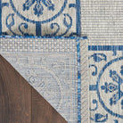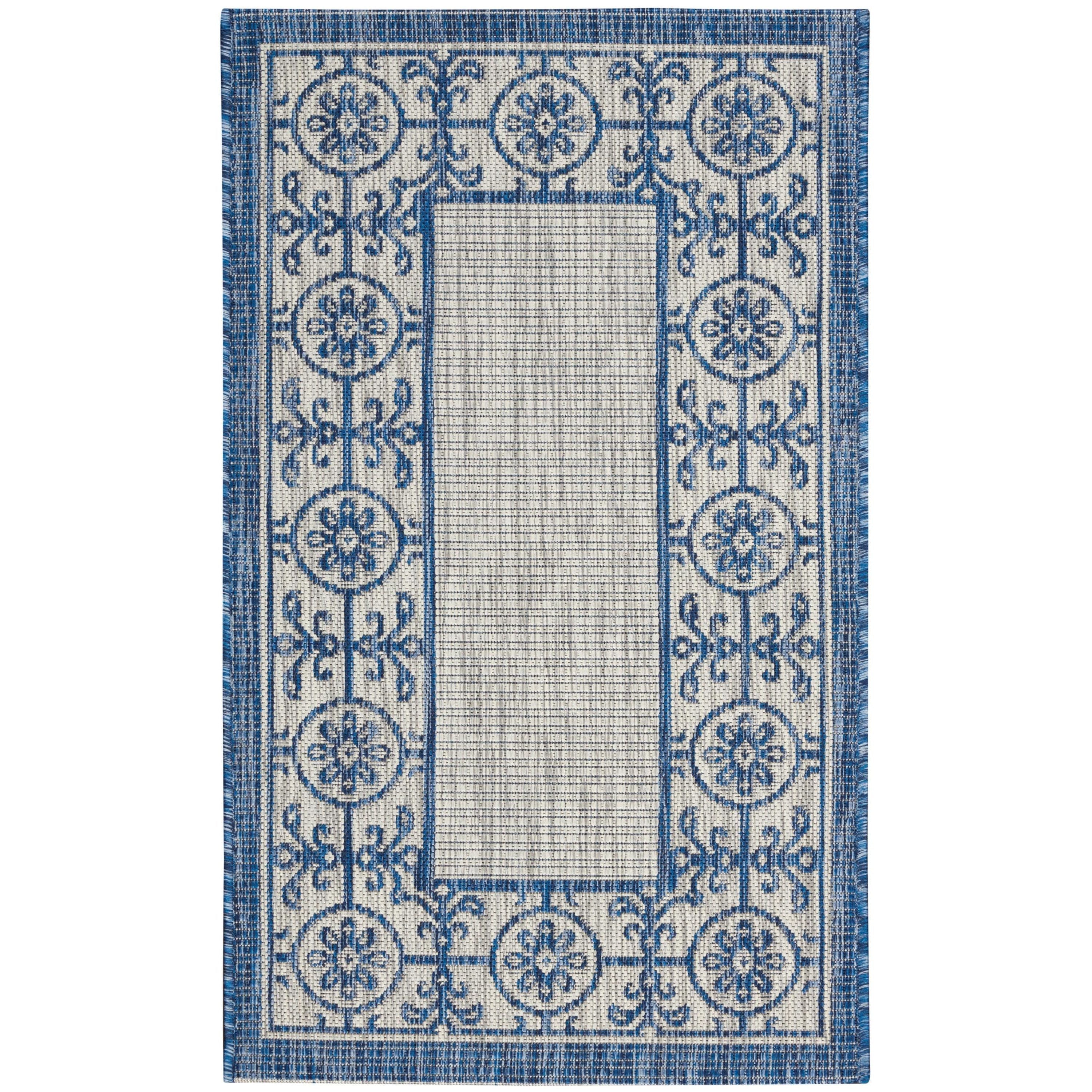 elegant Country Side CTR03 Ivory Blue rug from the Garden Party Collection by Nourison. This outdoor area rug is designed to enhance your space with its chic simplicity and durable flat-woven construction. The stunning blend of ivory and blue tones adds a touch of sophistication to any outdoor setting.