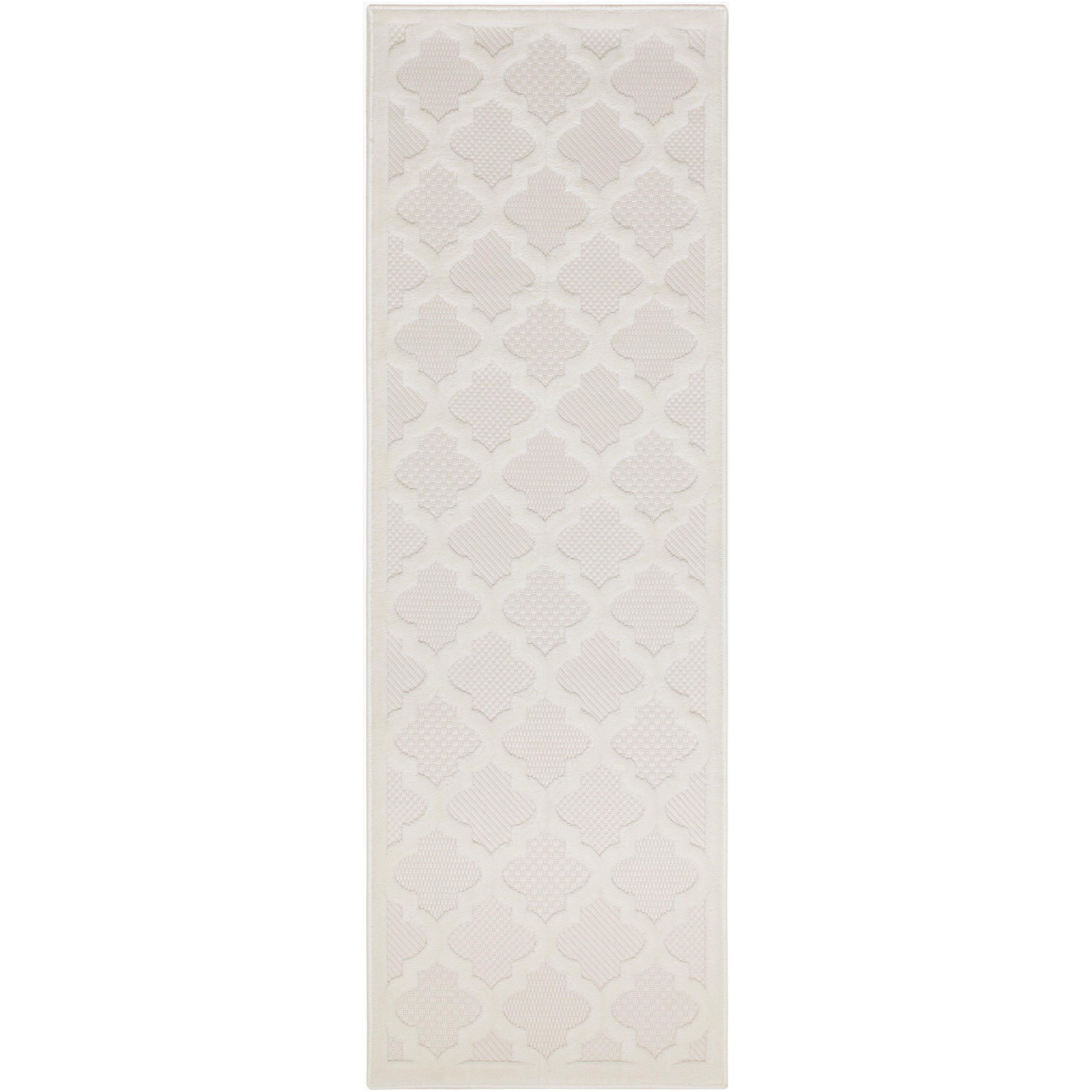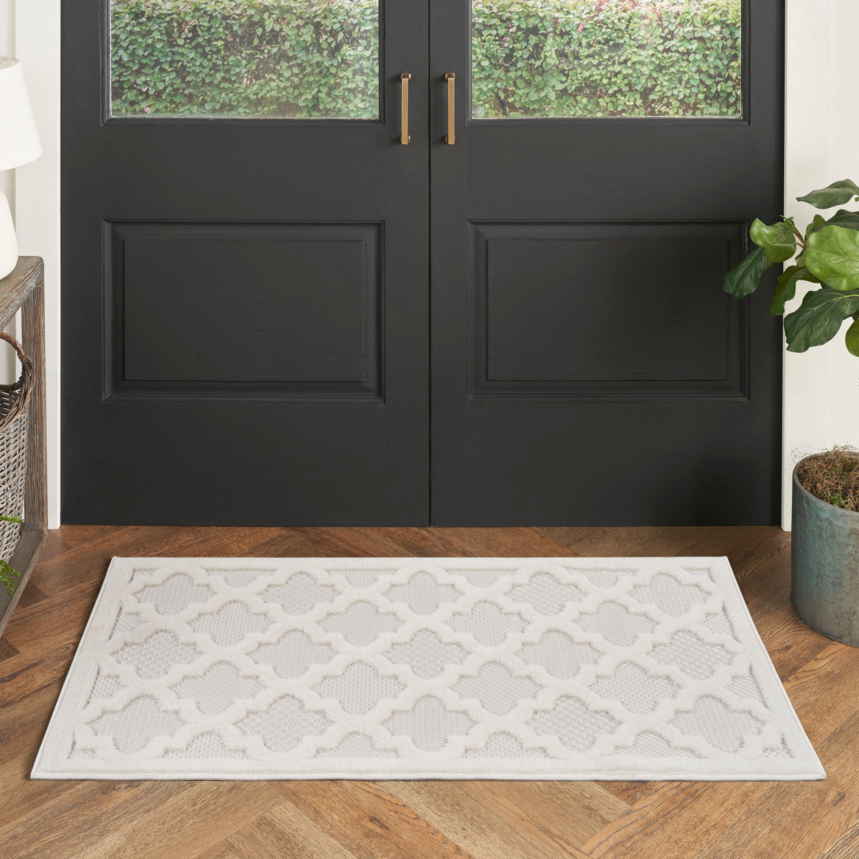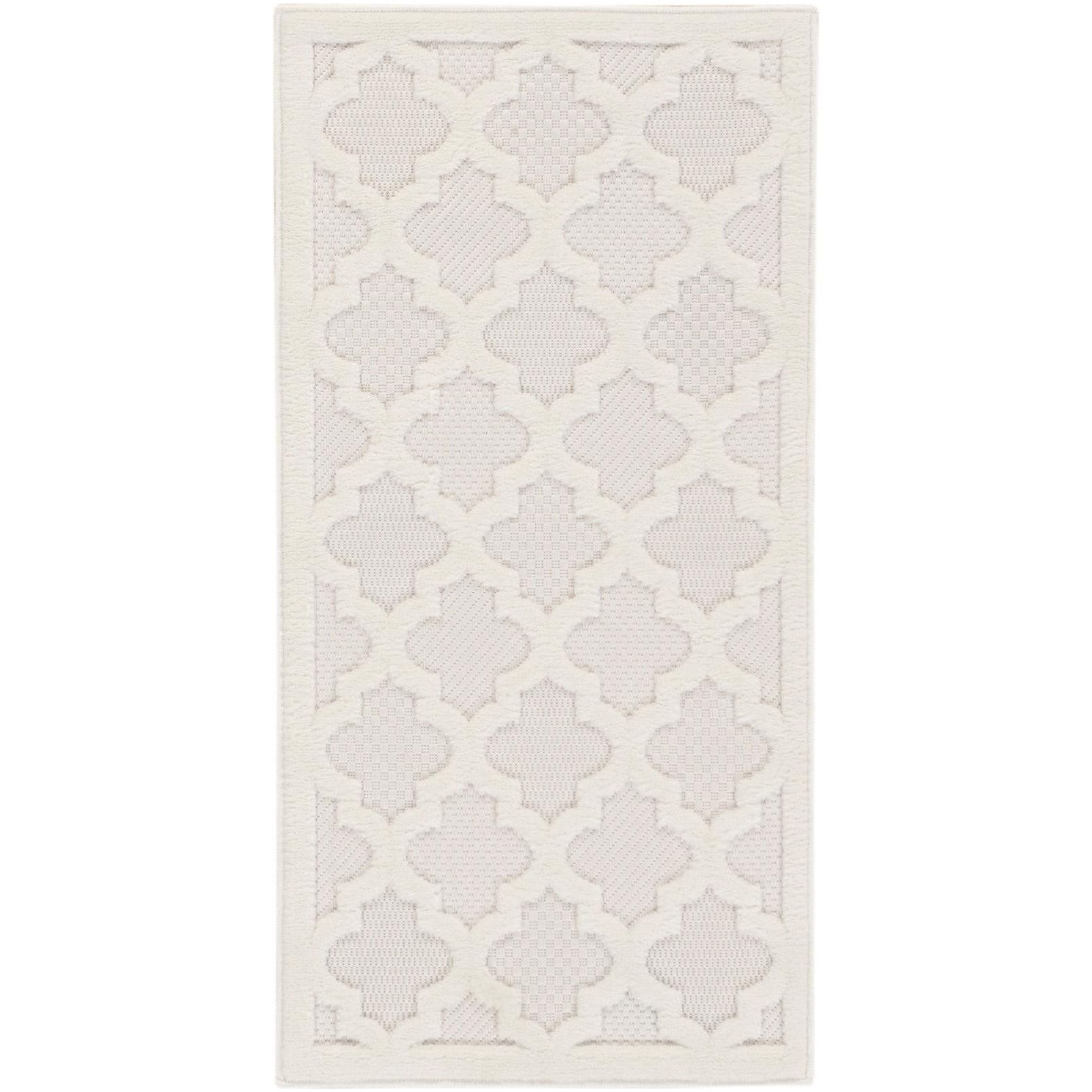 Elevate your indoor or outdoor decor with the Easy Care NES01 Ivory White rug from our collection. This versatile rug features a white backdrop with various flatweave styles and a raised Moroccan trellis pattern in ivory, adding a modern touch to any space. Whether you place it in your living room, dining area, entryway, or outdoor oasis like the patio or porch, this rug effortlessly enhances your surroundings. Crafted from durable materials with low-shed fibers, it's easy to clean and perfect for year-round use both inside and outside.