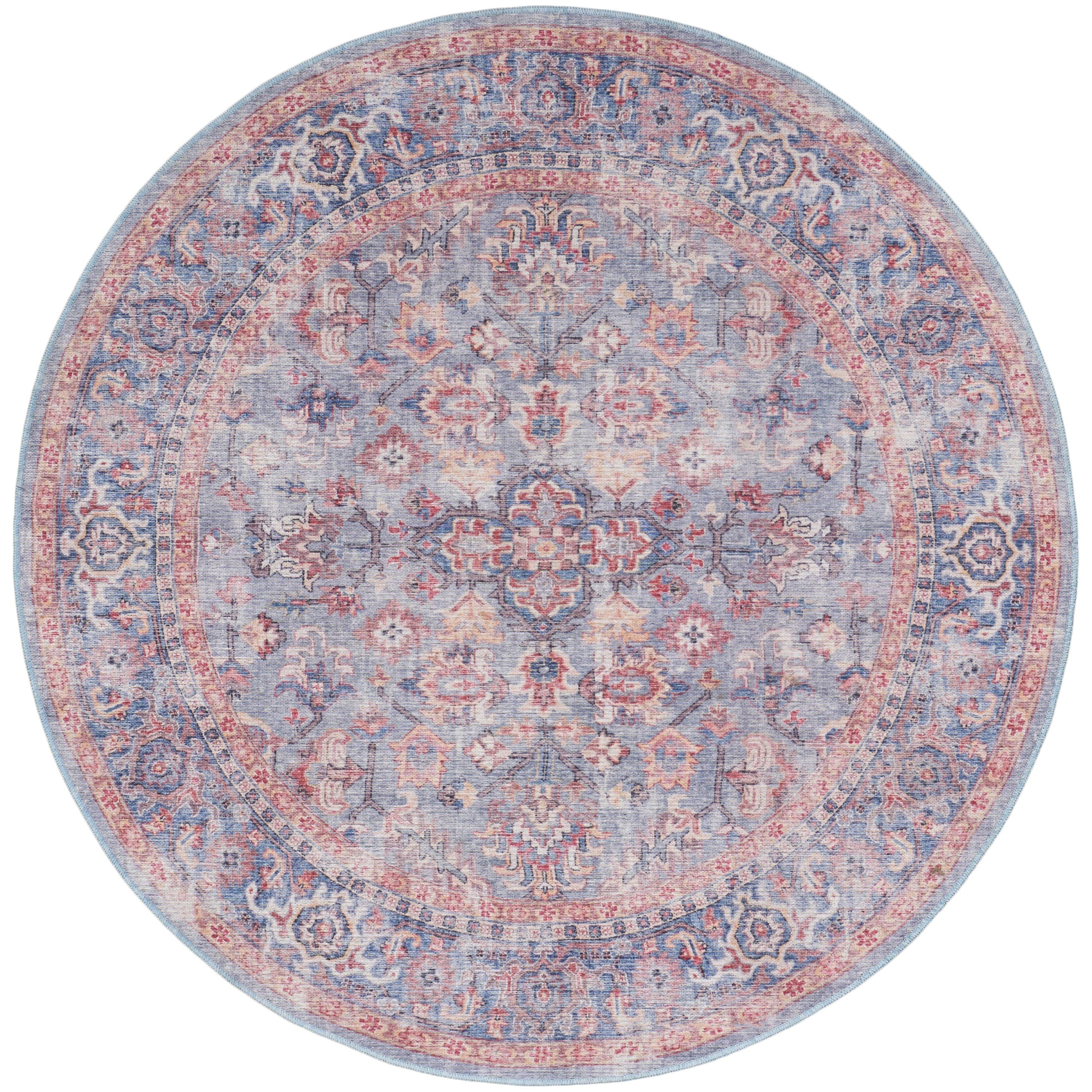 Machine Washable Series 1 SR104 Blue Multi rug, a versatile addition to any home decor style. This Persian-styled rug from the Nicole Curtis Series 1 Washable Rug Collection offers a calming presence with its subtle colors, making it perfect for French country, transitional, boho, and contemporary settings. The rug features a classic floral medallion design with a decorative border in shades of blue, ivory, and red, giving it the appearance of a rare vintage find. Crafted from soft chenille and cotton fibers, this flat woven rug is not only stylish but also conveniently machine washable for easy care and maintenance. Elevate your space with this elegant and practical rug today!