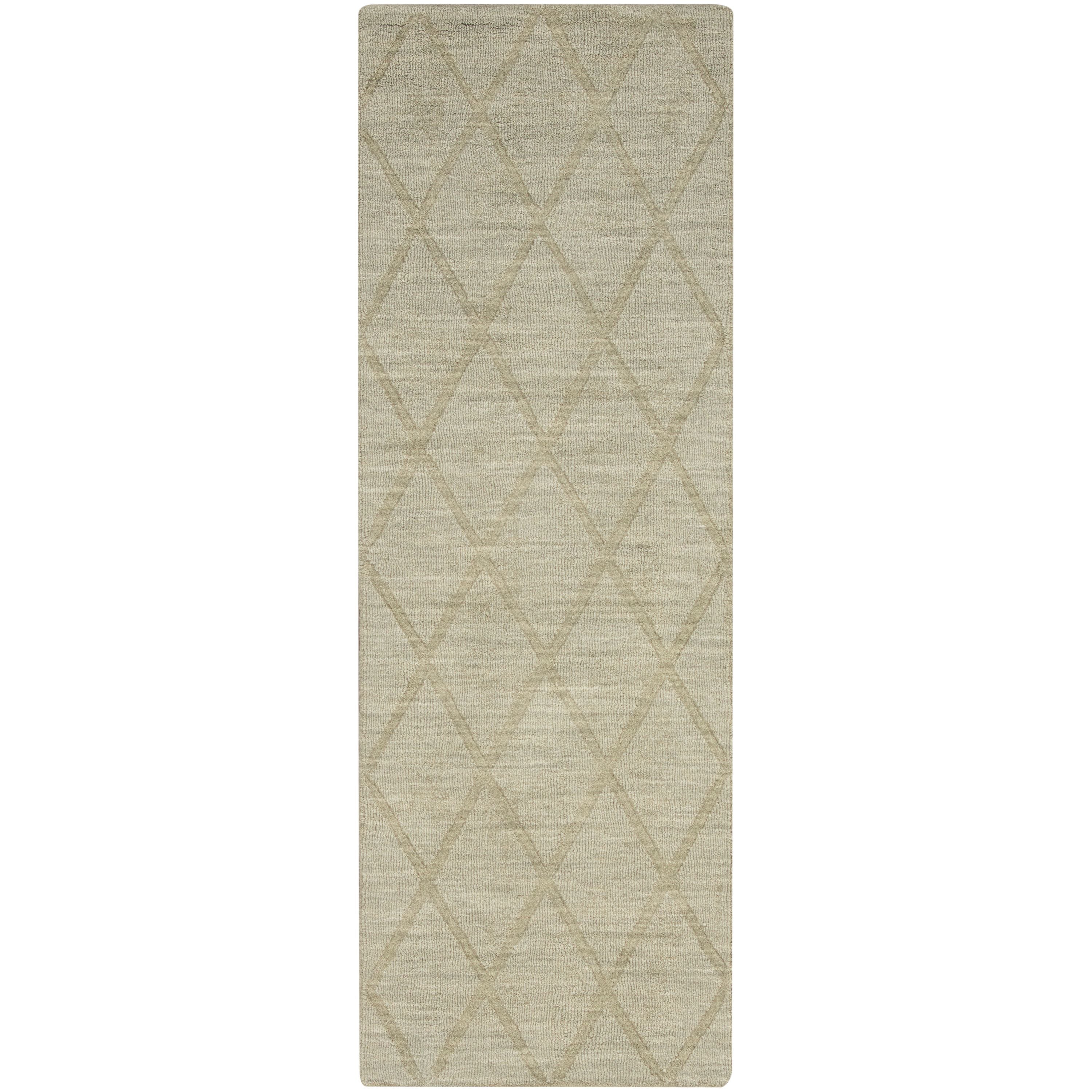 Invite a touch of understated elegance to your space with this sage geometric rug from the Wool Haven Collection. Featuring a simple trellis pattern on a solid ribbed ground, this rug boasts a soft texture that feels great on bare feet. This handmade rug is woven from 100% wool yarn that is naturally durable and easy to clean.