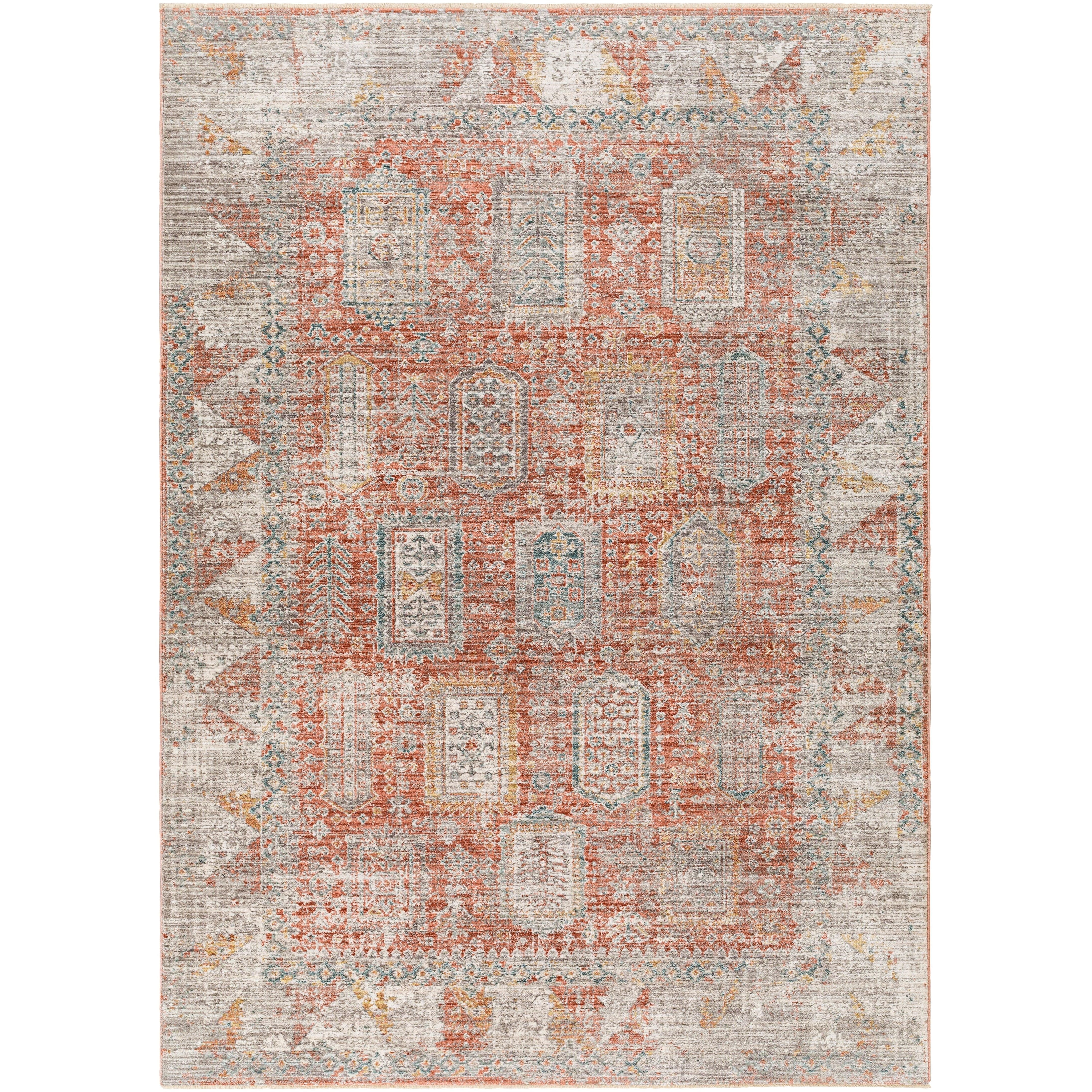 Detailed Colors: Burnt Orange, Off-White, Medium Gray, Olive, Dark Blue, Dark Brown