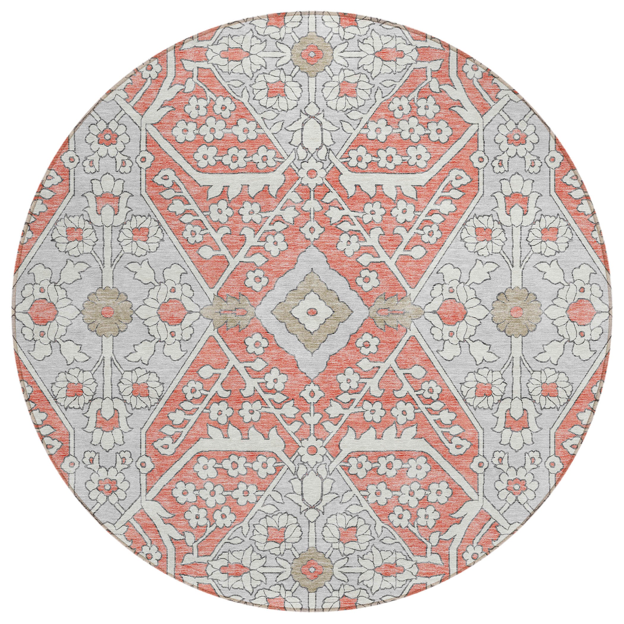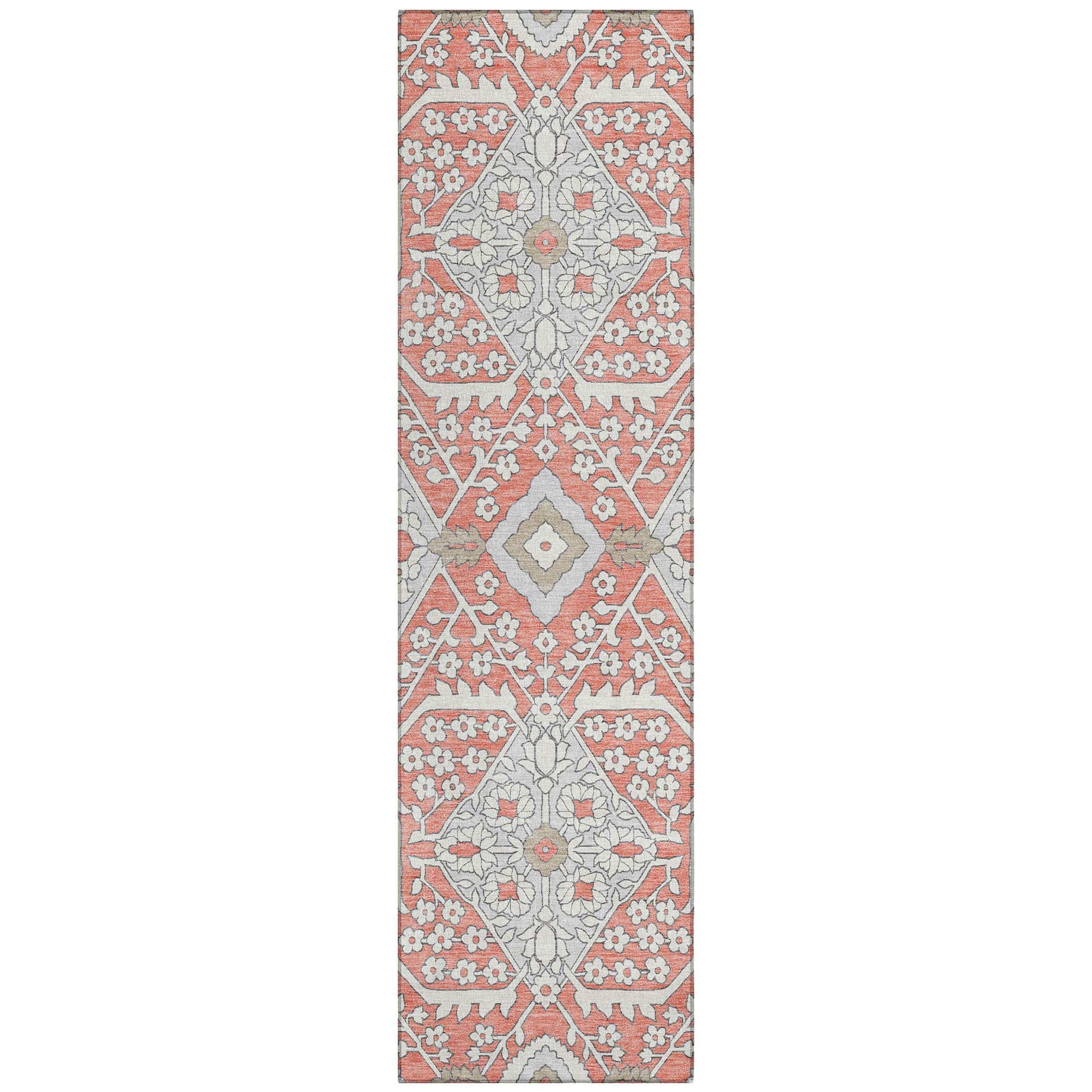 Chantille ACN863 Salmon area rug, a perfect blend of modern decor and timeless elegance. With an updated Agra pattern and striking oversized diamonds, this rug effortlessly combines traditional charm with contemporary flair. Its versatile design makes it a stylish statement piece for any room.