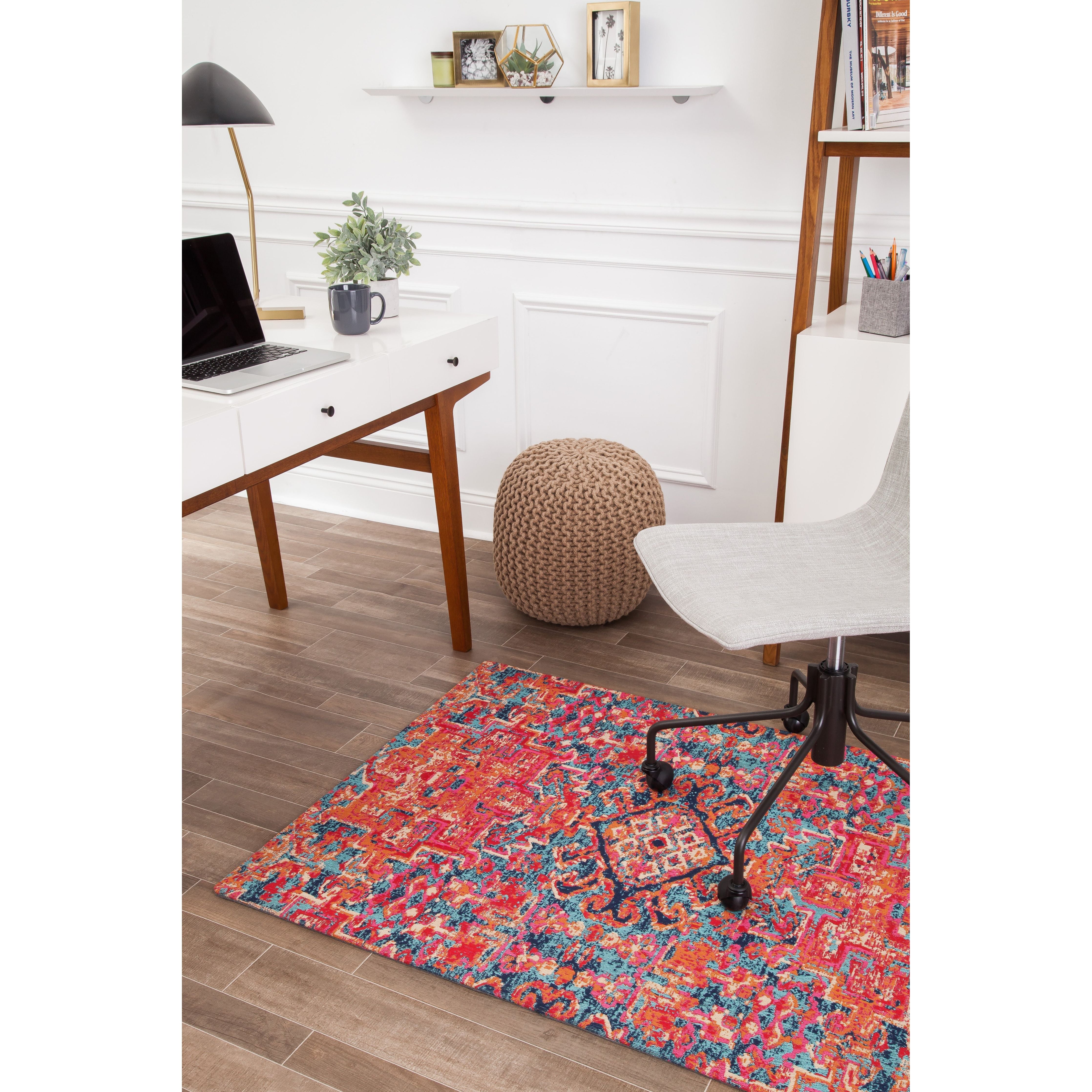 Upgrade your workspace with the Merida 1 2 Chair Mat in eye-catching Red Blue. Say goodbye to boring, plastic chair mats and hello to a mat that matches your style and work ethic. The Rug'd Chair Mat ® by Anji Mountain is here to revolutionize the office chair mat game with its exceptional durability, smooth rolling capability, and undeniable attractiveness. Show off your keen sense of design and impress your colleagues with this innovative mat that screams sophistication. Let your office decor speak volumes about your taste by adding the Rug'd Chair Mat ® to your setup today.