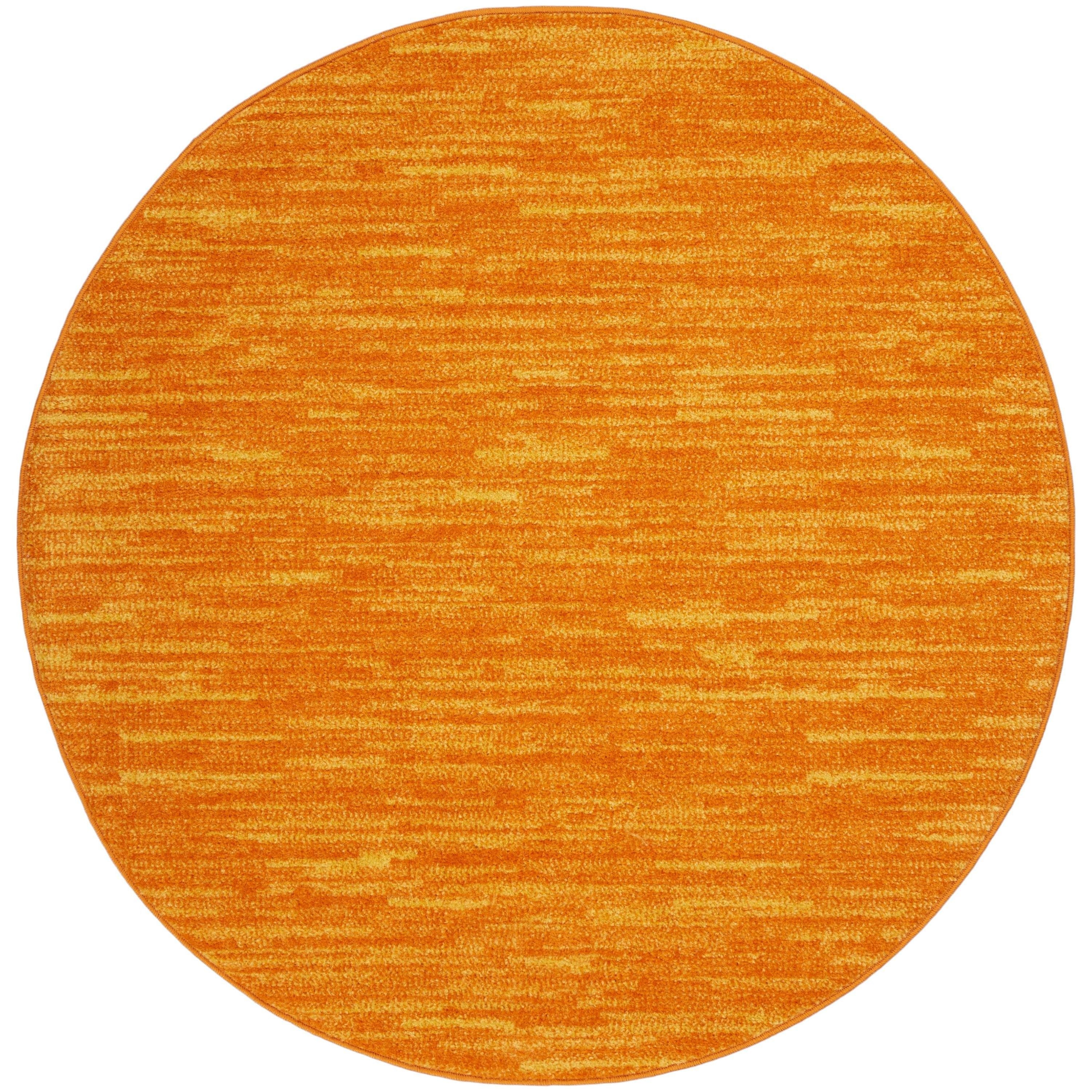 Nourison Essentials NRE01 Sunburst, a vibrant addition to your indoor or outdoor space. This sunburst orange rug from the Essentials Collection is designed for those with busy lifestyles, offering both style and practicality. Its solid pattern with subtle tonal variations and soft texture make it versatile for any room in your home. Whether used as a standalone piece or layered with other rugs, this modern rug is machine-made with durable polypropylene yarns that are easy to clean. With its low-profile construction, it can withstand heavy traffic without shedding, making maintenance a breeze - simply vacuum or hose rinse for long-lasting beauty.