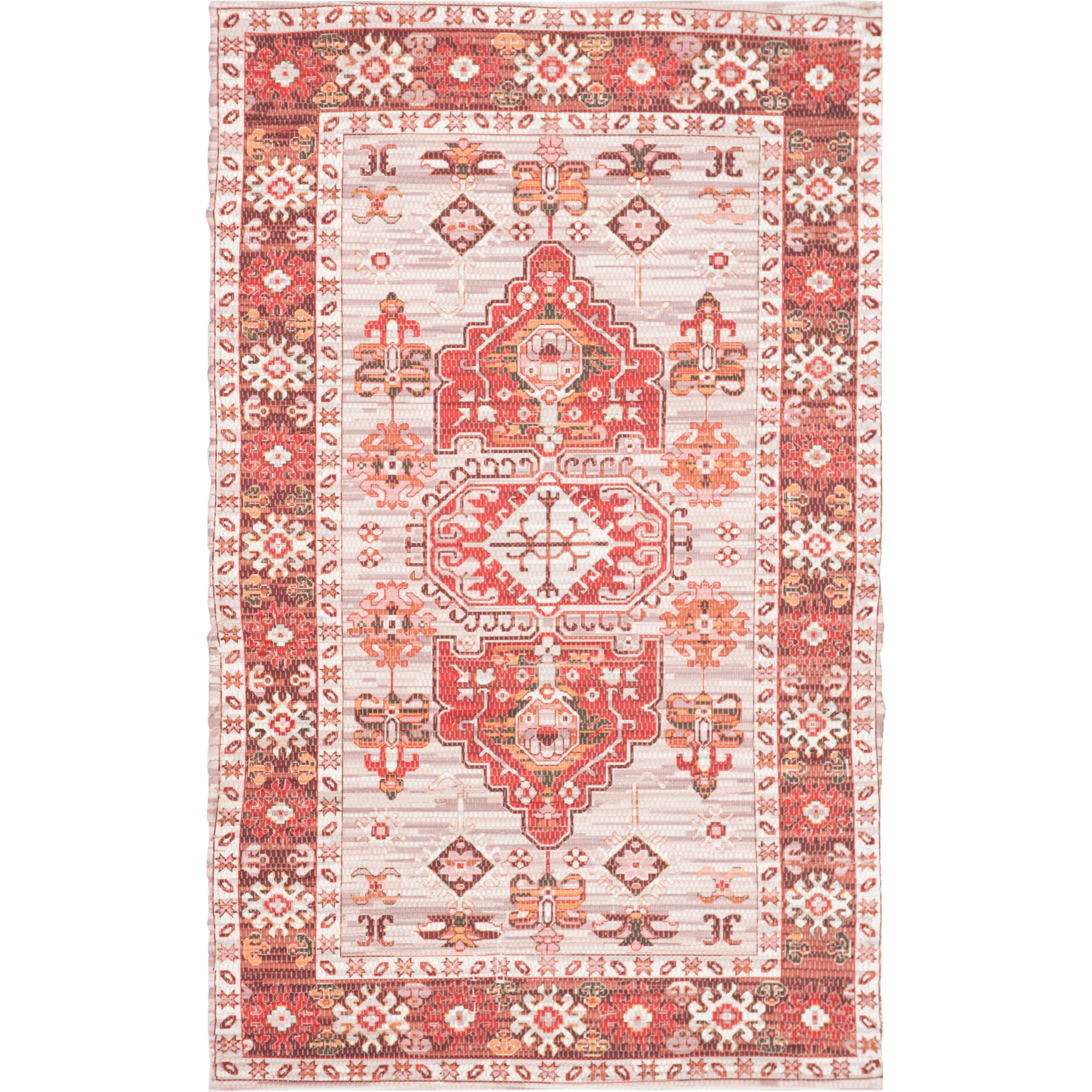 stunning Saffron SFN651Q Terracotta Ivory area rug, a masterpiece of exquisite design and vibrant color choices. This collection is a perfect source of inspiration to infuse creativity into your living spaces. Crafted with breezy cotton fibers in a hand-loomed flat weave style, this rug brings an air of relaxation to any room it graces. Its versatile appeal makes it a seamless fit for various decor styles, including coastal, contemporary, Southwestern, bohemian, and casual settings.